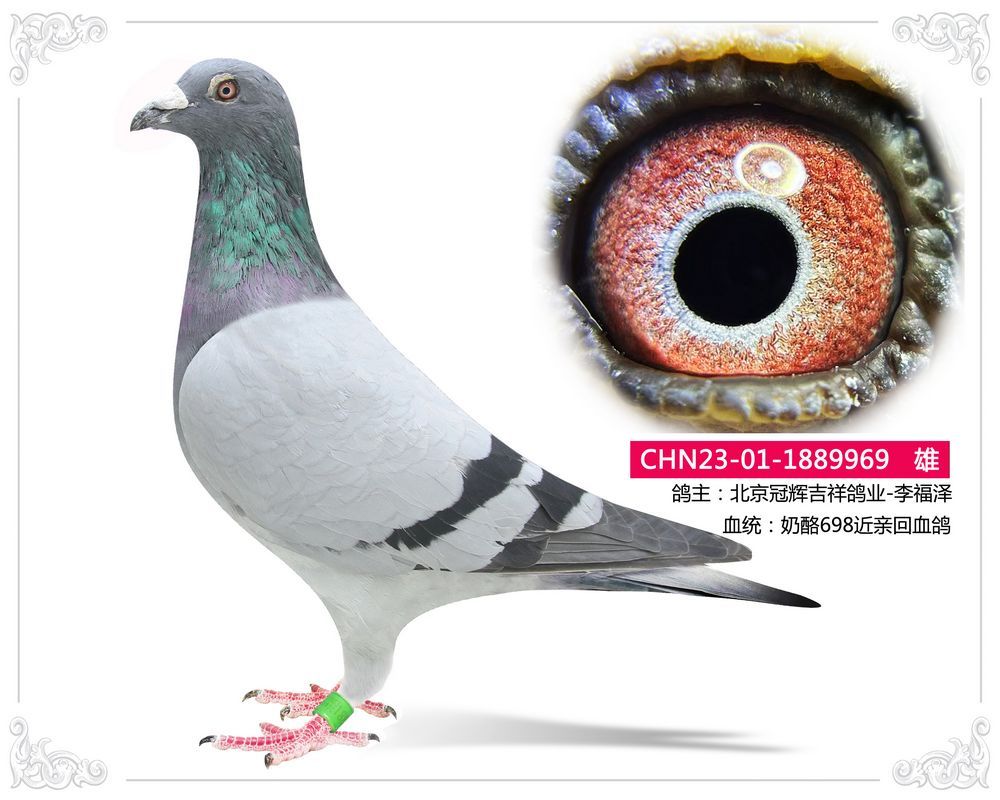 CHN23-01-1889969 雄 鸽主:北京冠辉吉祥鸽业-李福泽 咨询电话: 13601192027 白宇 (微信同号)运输方式:快递60/羽【新疆西藏包括】、长途车100元【不论羽数】、飞机400元"