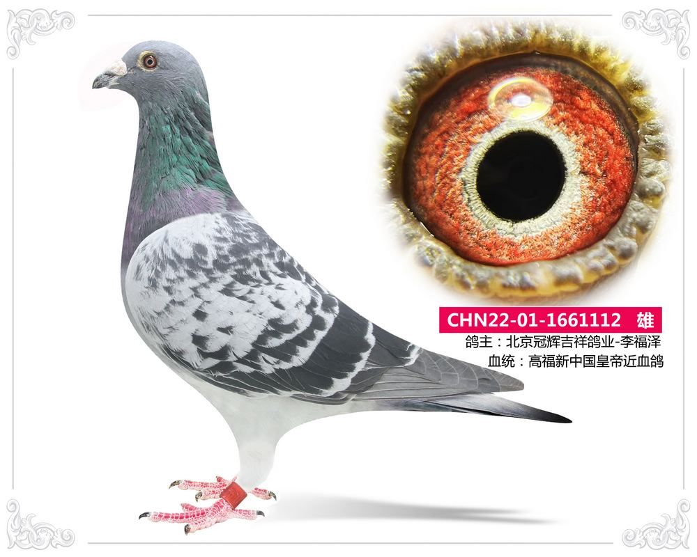 CHN22-01-1661112 雄 鸽主:北京冠辉吉祥鸽业-李福泽 "咨询电话: 13601192027 白宇 (微信同号)运输方式:快递60/羽【新疆西藏包括】、长途车100元【不论羽数】、飞机400元"