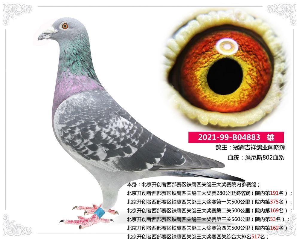 北京开创者西部赛区铁鹰四关鸽王大奖赛三关综合大排名487名;