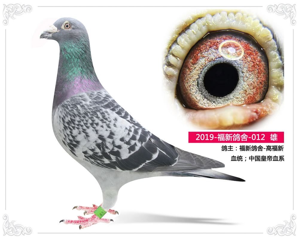 2019-福新鸽舍-012 雄 鸽主:福新鸽舍-高福新"咨询电话: 13601192027 白宇 (微信同号)运输方式:快递60/羽【新疆西藏包括】、长途车100元【不论羽数】、飞机400元"