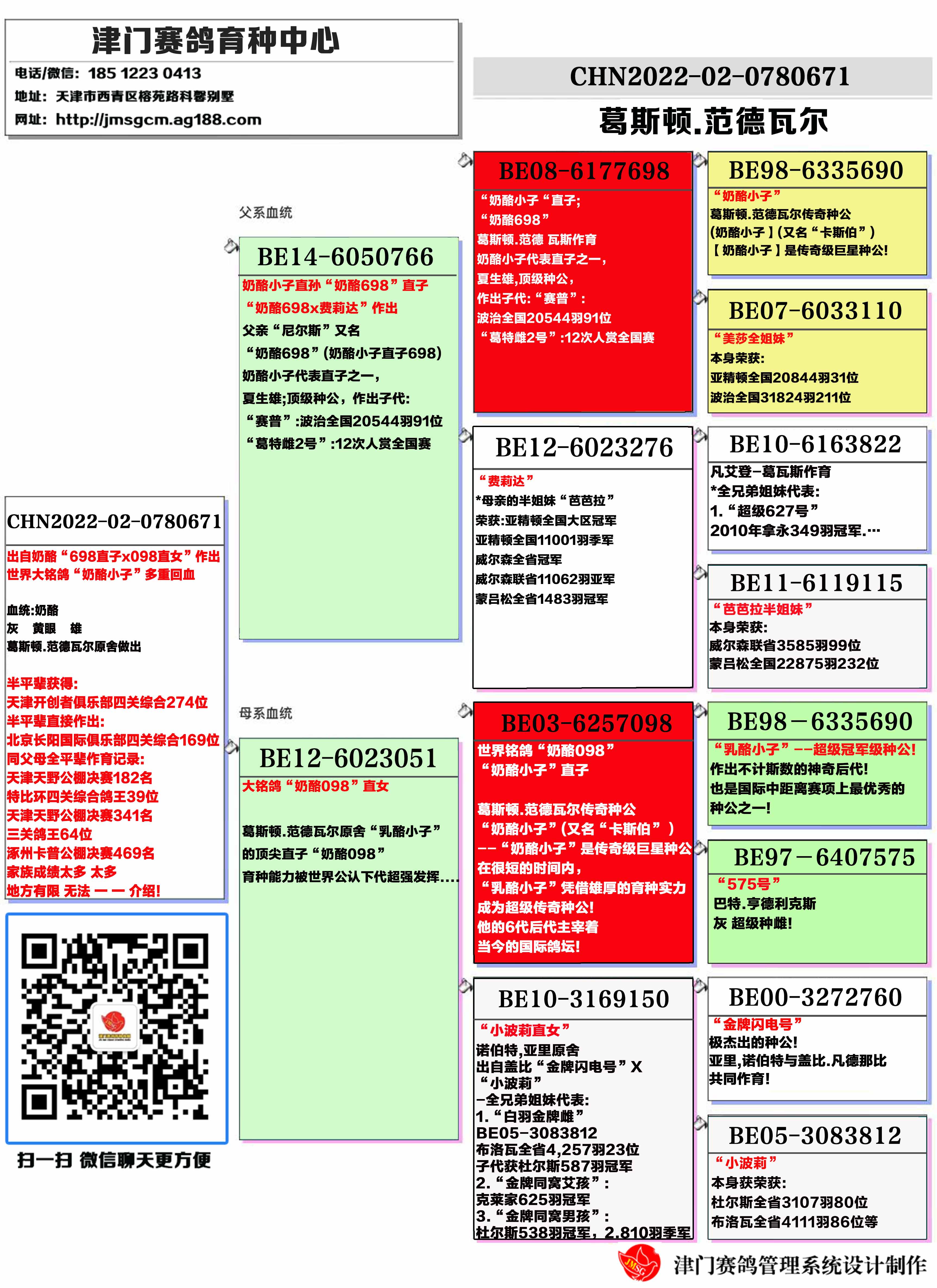 1599718 | 迪克.凡登布克“格里佩直子X基特尔外孙女”好红号多重近亲 | ¥1000元 | 0次 |