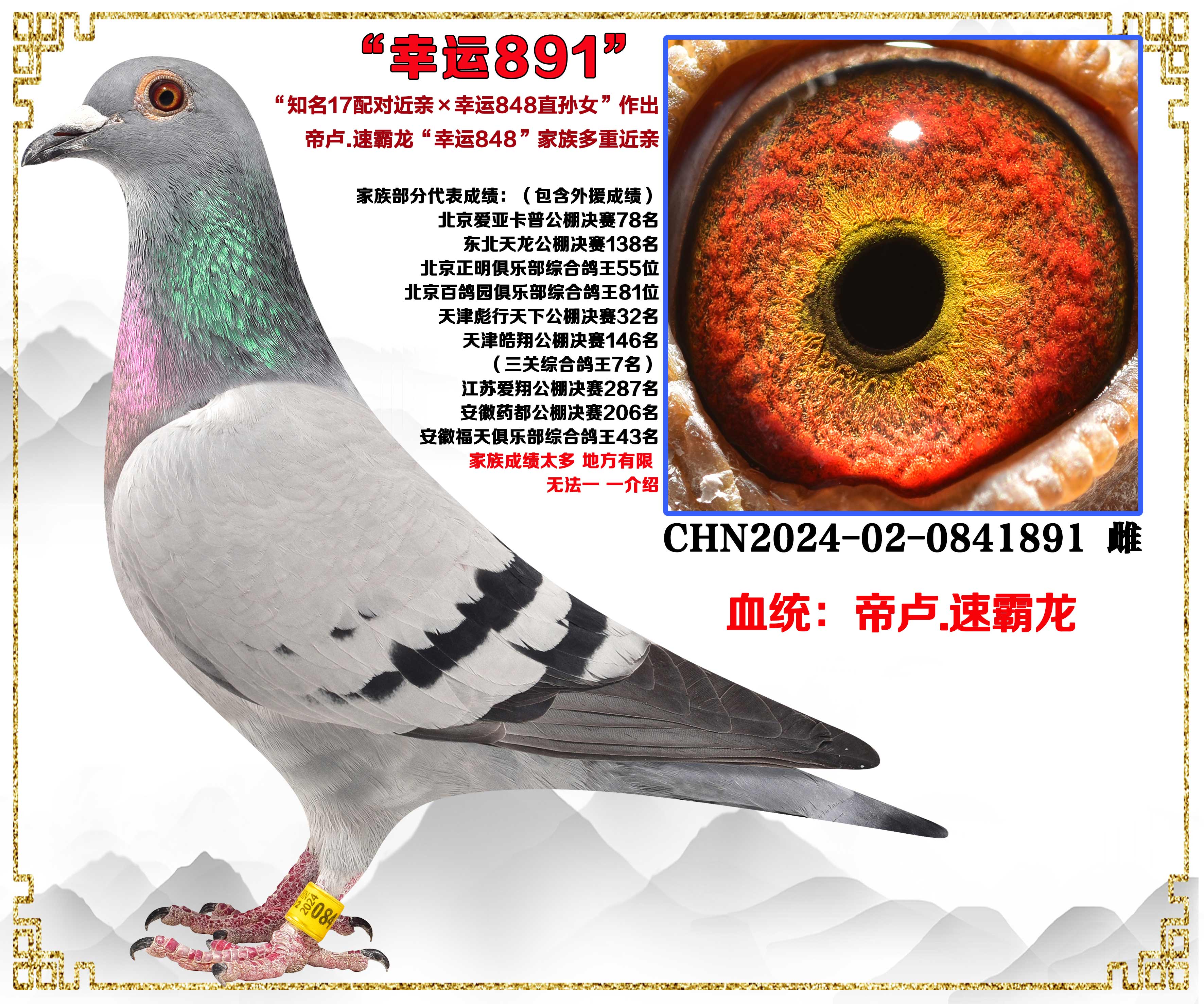 - 当前查看拍卖鸽:帝卢.速霸龙“知名17配对近亲X幸运84