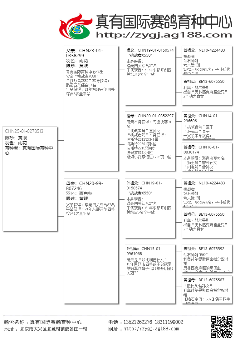 【在这三座金矿还未被世人发现之前,真有国际就第一时间把高品质的鸽子带到了国内,取得了空前的发挥。近几年大家才逐渐认识这几位大师鸽子的魅力。请记住!当任何商业鸽舍进入炒作后期的时候,他的鸽子质量与价值都会急剧下降,即便是詹森兄弟也难免于此。所以引进这家鸽舍最巅峰时期的鸽子,得以延续,才是真有国际成功的致胜法宝。】
