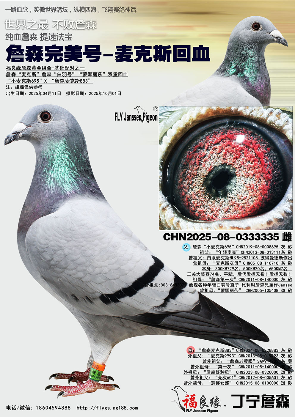 曾祖父:B03-6483072 詹森名种年轻白羽号直子 比利时詹森兄弟作Jansse
