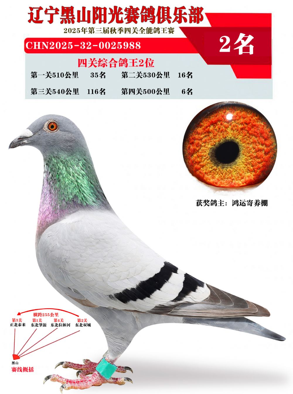 | 1599822 | 四关综合鸽王冠军.第四关季军 | ¥3200元 | 12次 |