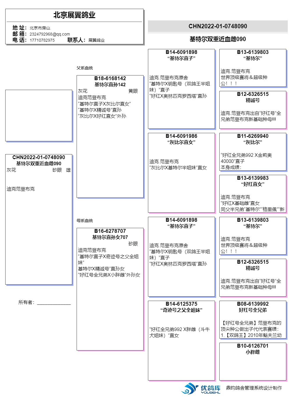 - 当前查看拍卖鸽:基特尔双重近血雌8090