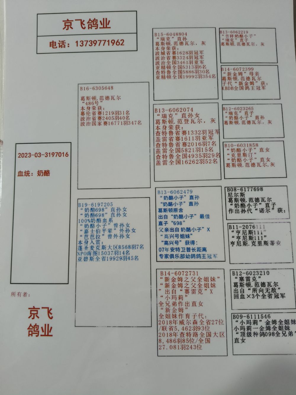1599969 鸽王杨直孙配鸽王杨外孙女 ¥200元 0次