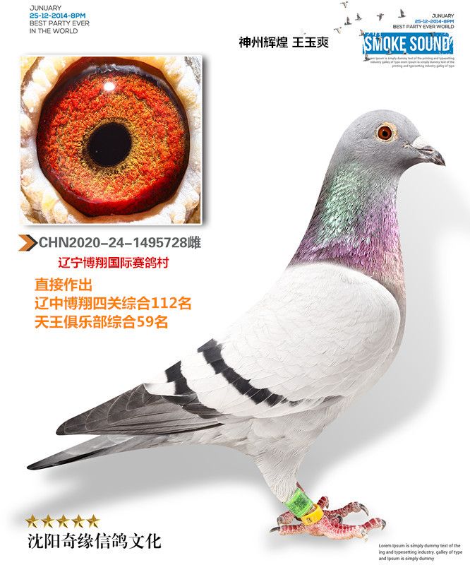 2、注明:鸽子在照片制作中,通常会使用Photoshop的图片翻转功能,造成视觉上足环位置的颠倒(左右脚互换),鸽子足环的位置以实物为准;