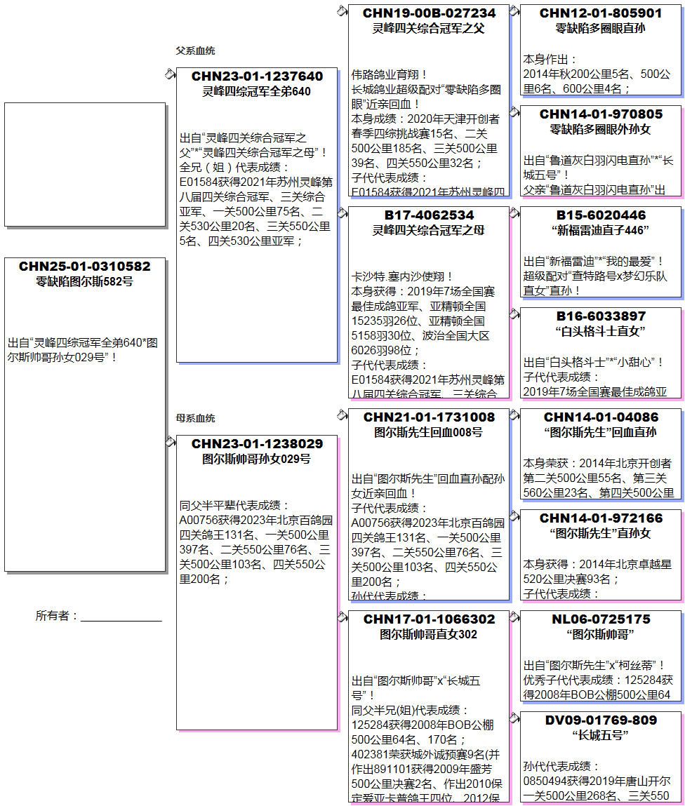 | 1600284 | 10.超长距离鸽王冠军孙代.0311361 | ¥2500元 | 16次 |