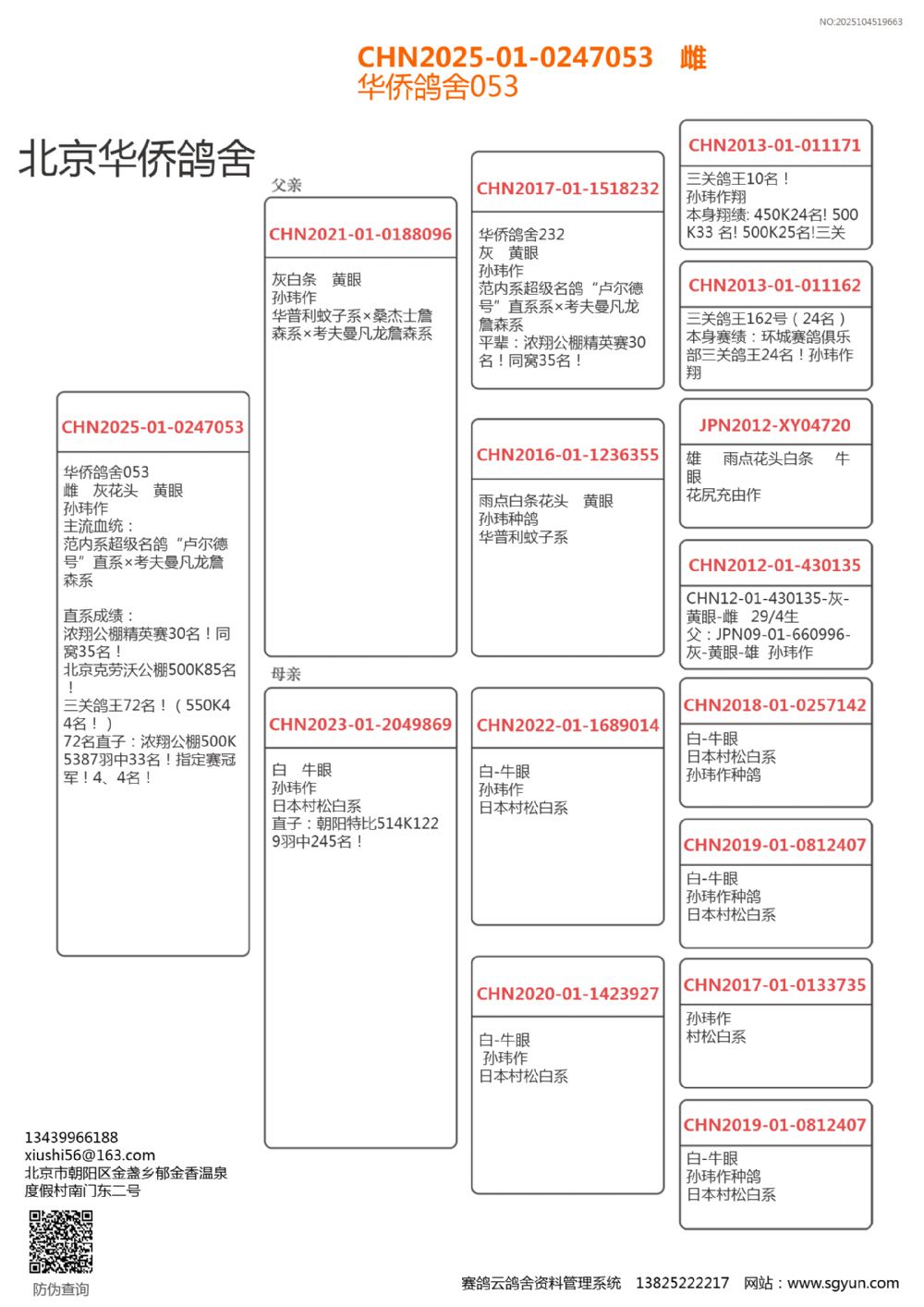 - 当前查看拍卖鸽:9号--詹森019系0247053-灰花