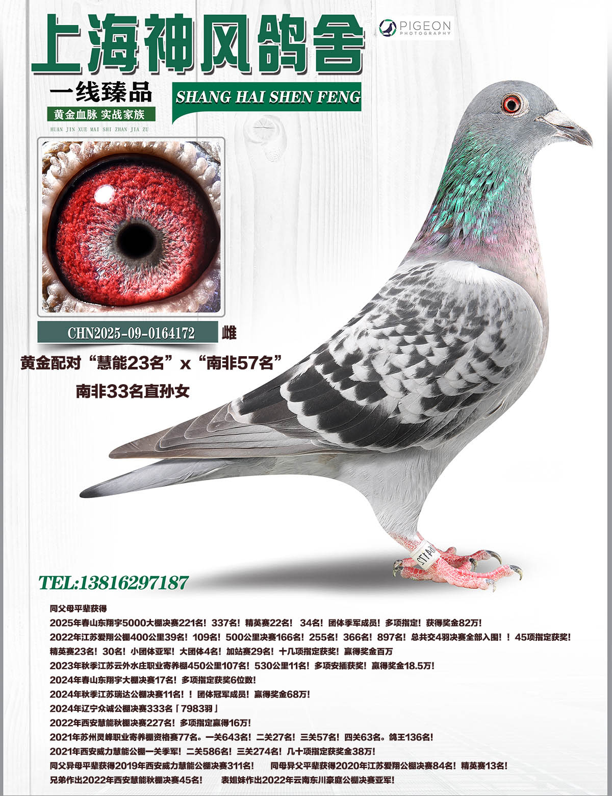 祖母:AU2017-T-33本舍胡本头号中鸽“鸽王缔造者”直女!本身和全平辈后代西安威力。宁夏黄河。安徽万佛。江苏爱翔。浙江先锋。上海君冠。等等众多公棚都有高位获奖!