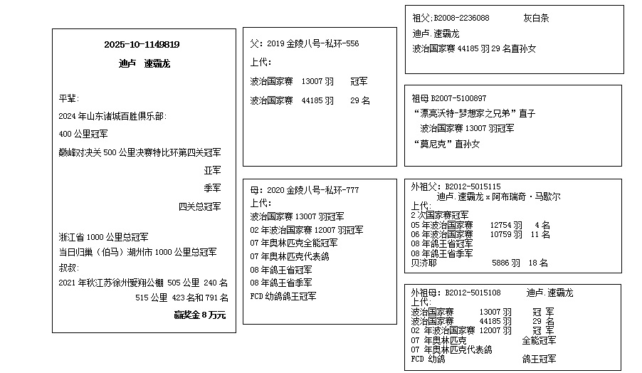 浙江王刚获浙江省1000公里总冠军,当日归巢(伯马)浙江省湖州市1000公里总冠军(迪卢速霸龙)