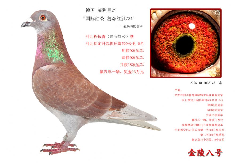 金陵八号2020年获江苏金翼公棚400公里6名,加强赛4名,精英赛冠军(飞奴)