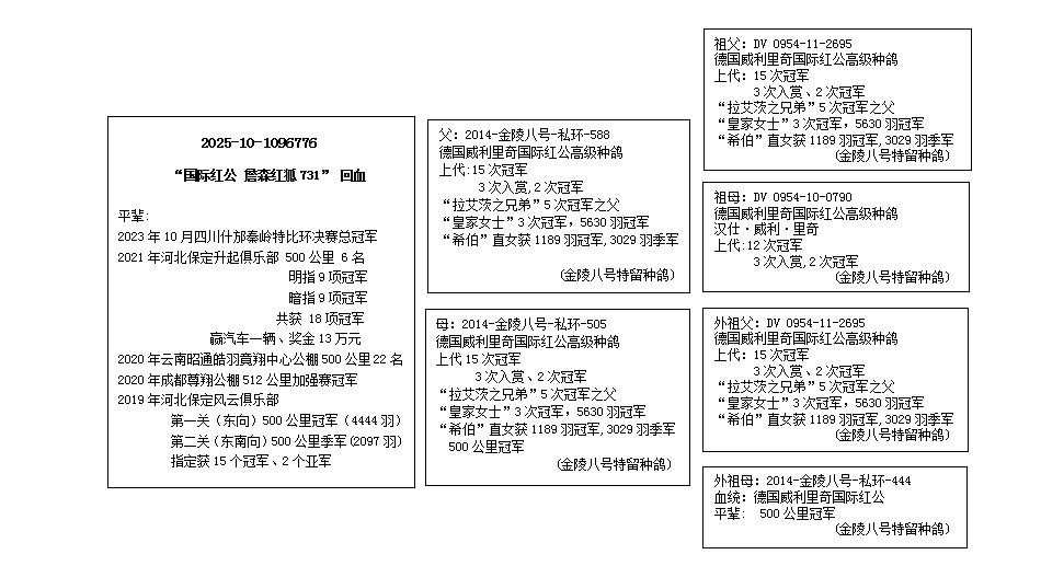 - 血统:德国 威利里奇“国际红公 詹森红狐731”