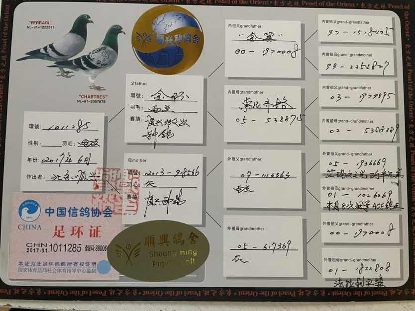 提供血统书、足环证及父母血统书复印件 当年幼鸽雌雄仅供参考,以实际雌雄为准 。