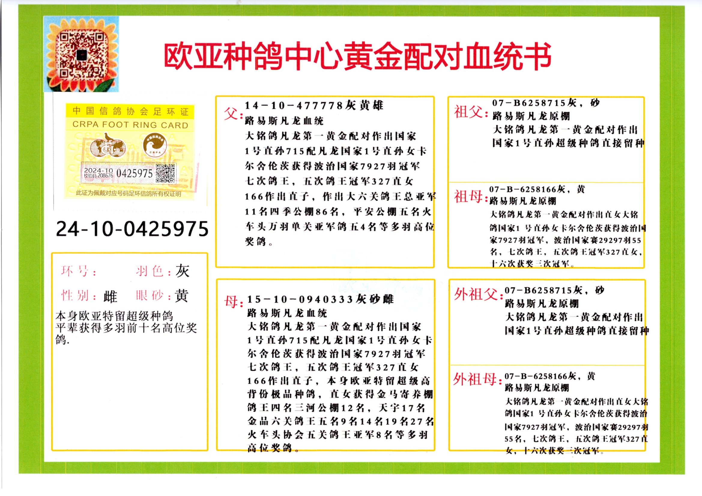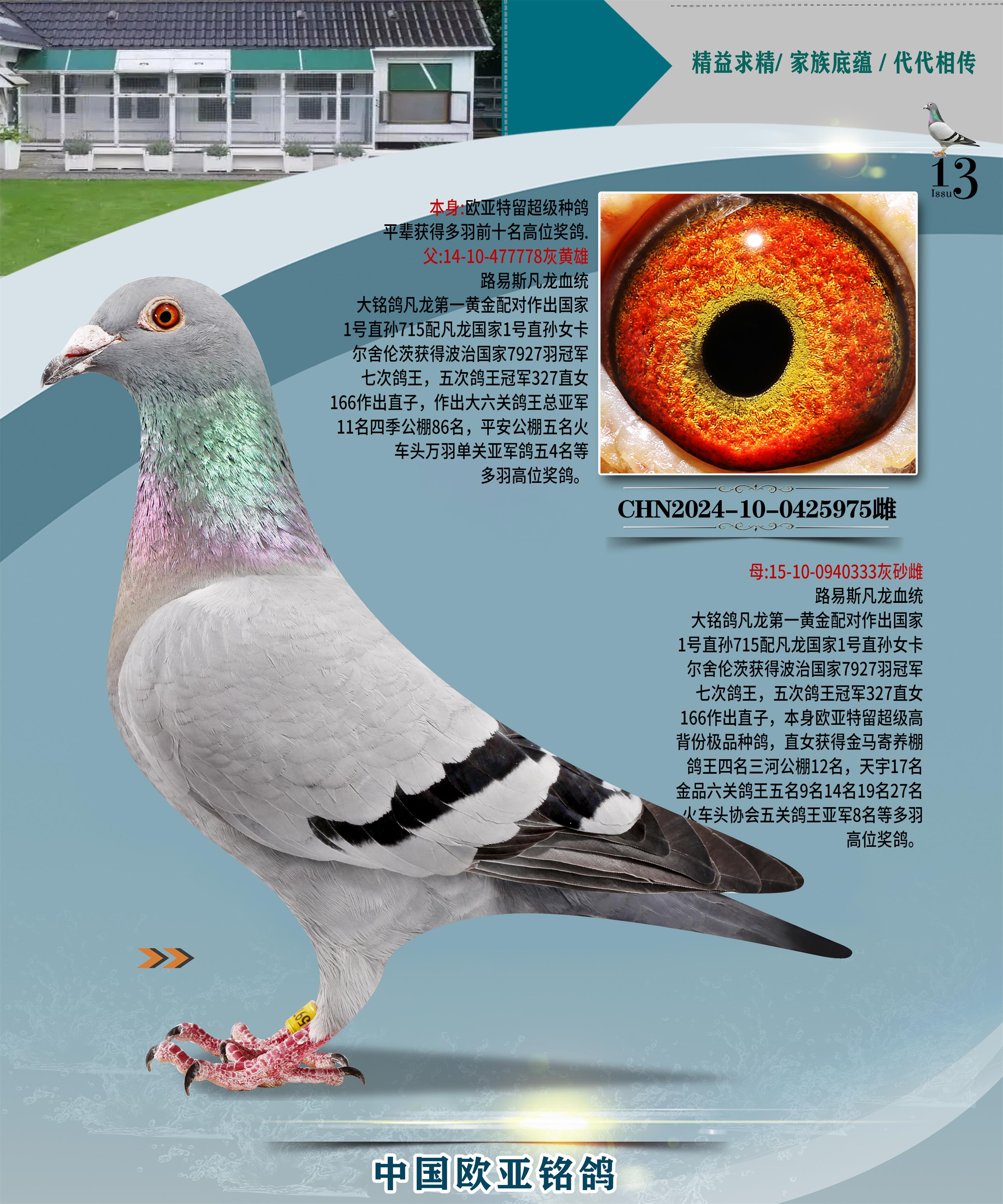 24年秋南京特比环欧亚荣获大团体冠军.小团体冠军551公里大特比13名.14名.16名.19名.20名.21名.24名.26名.27名.28名.42名.52名.54名.57名.65名.66名.68名.70名.71名.72名.74名.76名.80名.82名.83名.84名.85名.86名.90名.92名.110名.116名.121名.122名.128名.131名.158名.161名.164名.165名.166名.172名.174名.177名.182名.195名.196名.201名.205名.208名.210名.216名.253名.269名.275名.276名.294名.296名.299名,,24年秋云南天南铜都公棚决赛415名.天南铜都小棚决赛409名.云南玉活公棚决赛102名.490名.团体32名上笼二羽进二羽,天南铜都大棚506公里决赛445名。热烈祝贺河北省巨鹿县李兰生老师用欧亚泰山号血系连续十一年夺冠军,河北省国家赛冠军.全国季军等多次前十名高位,扬州王军王总用欧亚利奥24年春季获山东翔宇公棚决赛33名盖比53名。南京刘正龙刘总用欧亚盖比获得24年秋山东潍坊国际公棚决赛42名.精英赛30名.三关鸽王71名.决赛86名.加站赛16名.南京市特比环A组鸽王9名.B组鸽王5名.6名.C组鸽王5名.精英赛冠军4名.技能赛A组冠军4名.5名.秦淮区特比环荣获15名.46名.48名.87名。四川西昌徐亮徐总用欧亚利奥获得凉山州聚友决赛177名.第二关亚军双关鸽王19名.三关鸽王105名.云南豪庭公棚决赛603名。热烈祝贺24年四川重庆翔园鸽舍用欧亚泰山号荣获春季400公里冠军.秋季500公里冠军,河北王总用詹森X利奥获得千羽千翔公棚400公里冠军,广东蔡楷焕荣获24年秋爱好者 赛鸽俱乐部三关鸽王季军.一关420公里99名.二关450公里11名.三关520公里32名.单关季军.7名.12名,江西李卫兴荣获贵州红枫公棚8名.共翔俱乐部寄养棚四关综合鸽王30名.一关400公里78名.二关500公里55名.三关520公里37名.四关500公里57名.同父母获公棚18名.雷鸣获得武汉黄浦育翔中心冠军,四川陈文获得四川明鸿俱乐部300公里梦幻2名.3名.4名.9名.10名.13名.14名.15名.31名.34名.40名.41名.42名.43名.69名.71名.72名.73名.74名.94名.95名.97名.98名.99名.419公里决赛荣获总冠军7名.总共归巢9羽,四川徐亮获豪庭决赛603名,山西郑勇获得山西泰鑫公棚决赛255名詹森红狐,热烈祝贺马总获得开尔(飞跃队)决赛9名获奖金1310000万元.第一关52名,天津津福资赛180公里96名.获奖金429543万元,欧亚支持全国鸽友24年秋多人报喜 祝大家取得更好成绩,给欧亚报喜鸽友欧亚决定给每人赠送一羽超级种鸽。欧亚俱乐部特比环多关鸽王成绩:15年秋淮安特比环黑色星期一全会上笼9700多羽,当天无鸽归巢,第二天全会归巢357羽,本舍归巢158羽.前十名八羽.前一百名归巢57羽,16年春季获五关鸽王总冠军,总亚军四名.六名.七名.九名.十名.晶艺俱乐部520公里冠亚季军5名.6名.7名.9名.11名等,火车头冠军.季军6名.8名.9名.10名,16年秋晶艺俱乐部特比环520公里亚军.季军4名.6名.7名.9名,15年春南京白下特比环冠军.亚军.季军6名.7名.8名.9名.10名.指定鸽A B组获得冠军.亚军.季军4名.5名.,17年淮安特比环亚军.4名.5名.7名.8名.10名.六关鸽王总冠军.4名.6名.9名.10名,寄养棚宿迁刘总20羽特比环获冠军.季军.4名.7名.8名.9名等。18年荣获万羽特比环六关鸽王总冠军.总亚军.总季军.6名.8名.十名.单关四羽冠军.二羽亚军.四羽季军.前十名27羽。19年秋万羽特比环六关鸽王总亚军.总季军.5名.8名等,单关二羽冠军.三羽亚军.一羽季军前十名31羽。20年秋淮安市鸽会四关特比环大赛风雨无阻鸽王亚军.鸽王六名,金品俱乐部万羽特比环六关鸽王总冠军,总亚军.四名.五名.六名.七名.八名.十名.前二百名鸽王35羽,单关冠亚季军前十名四十多羽,火车头五关鸽王季军.六名.八名.前二百名鸽王十七羽。20年春荣获淮安五区一市四关鸽王总冠军.亚军.四名.八名.九名。21年秋荣获金品万羽特比环大赛六关鸽王总亚军.总季军.四名.七名.九名.十名.单关冠亚军季军前十名三十多羽。火车头协会鸽王六名.七名.十名.单关前十名十七羽。22年秋荣获鸽王总冠军.总亚军.5名.7名.8名.9名.11名.单关冠亚季军前十名三十多羽,第一关单关前二百名四十多羽,第二关前二百名三十多羽,第三关前二百名四十多羽,第四关前二百名四十多羽,第五关前一百名53羽。23年秋荣获鸽王季军.五名.八名.十名.13名.17名.20名.27名等多羽鸽王.单关前十名二十多羽。公棚.寄养棚部分成绩:16年秋宁夏黄河公棚总冠军电脑戈马力指定通炮冠军,17年送八羽参赛获得鸽王八名进奖四名,支持韩总荣获八名。支持鸽友荣获宁夏中卫公棚决赛总冠军.精英赛冠军,支持18年宁夏黄河公棚决赛冠军詹森X泰山。安徽鼎博寄养棚院内外四关鸽王总冠军.鸽王十七名.三十七名同窝,鸽王39名.42名.58名.67名。18年山东公棚预赛冠军.决赛65名.送八羽进奖五羽.指定获奔驰汽车一辆。支持鸽友获得云南蓝云公棚冠军.盖比X佛卡门。支持鸽友荣获云南银集公棚决赛冠军 詹森427X520血系 速度赛6700羽冠军。17年荣获金马俱乐部寄养棚四关鸽王总冠军.季军.六名.八名.第一关冠军.亚军.季军四名.七名.十一名.金牌教练奖。支持鸽友18年北京费翔公棚预赛九名电脑X桑杰士,支持鸽友荣获陕西威力公棚决赛11名.内蒙古临河寄养棚四关鸽王六名.詹森配泰山,支持河北王总用欧亚詹森427配胡本喜获20年秋开尔青年棚季军。云南东荣公棚16年预赛冠军.决赛77名.17年决赛12名.詹森红狐X泰山,17年平安公棚决赛4名 詹森427。欧亚获得21年金母寄养棚第一关四名.第二关5名.第三关5名.6名.7名.10名.三关鸽王总冠军,四关鸽王14名.十羽鸽王。支持河