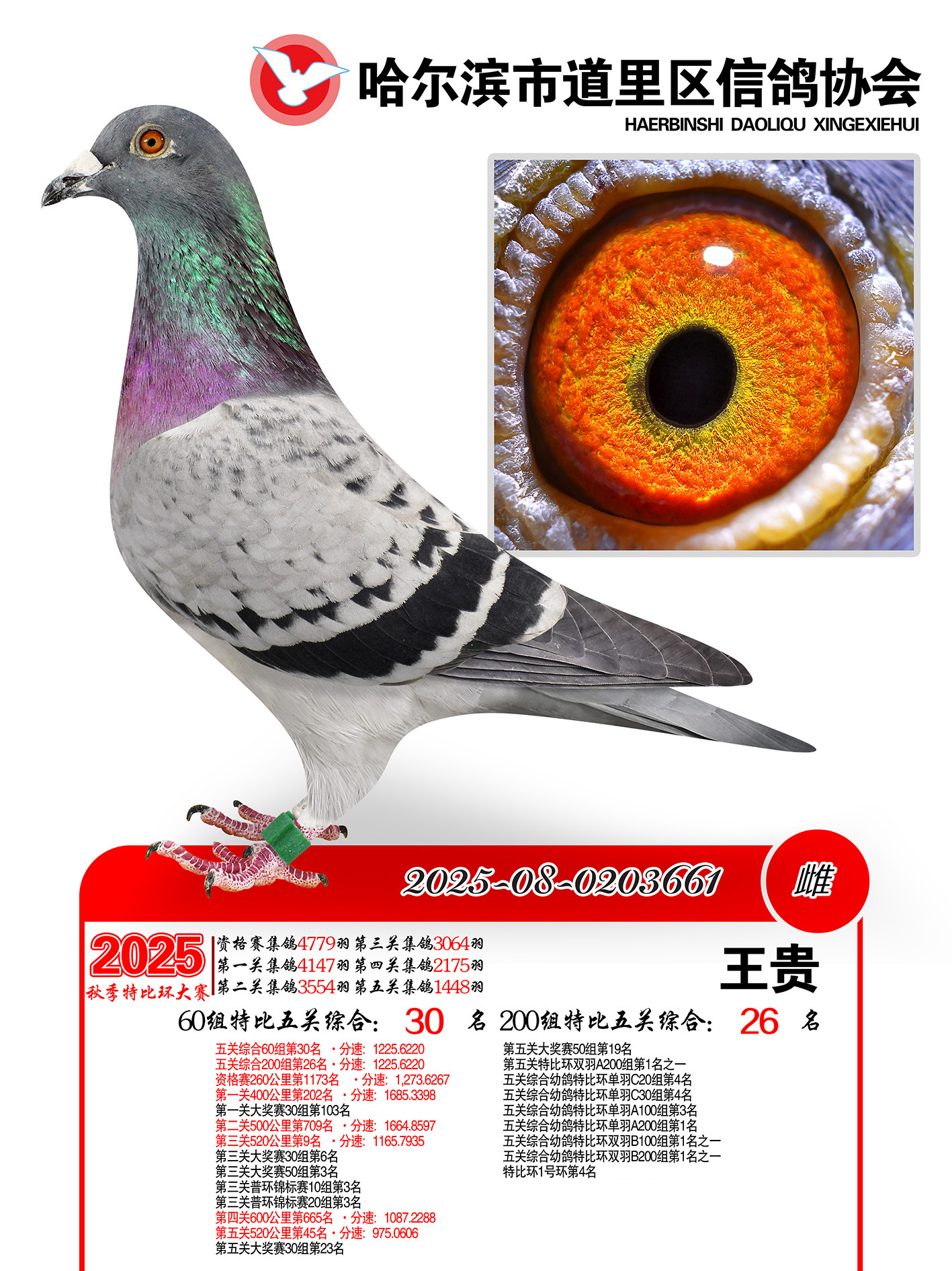 | 1600553 | 道里五关鸽王60组35名(200组31名) | ¥2600元 | 0次 |