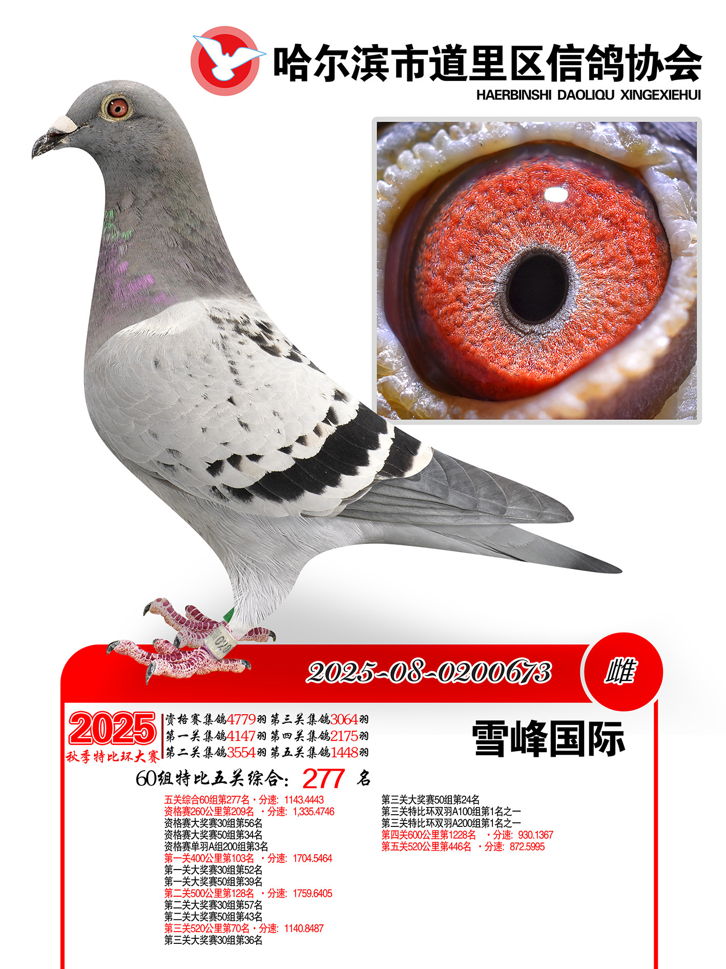 道里五关鸽王60组277名