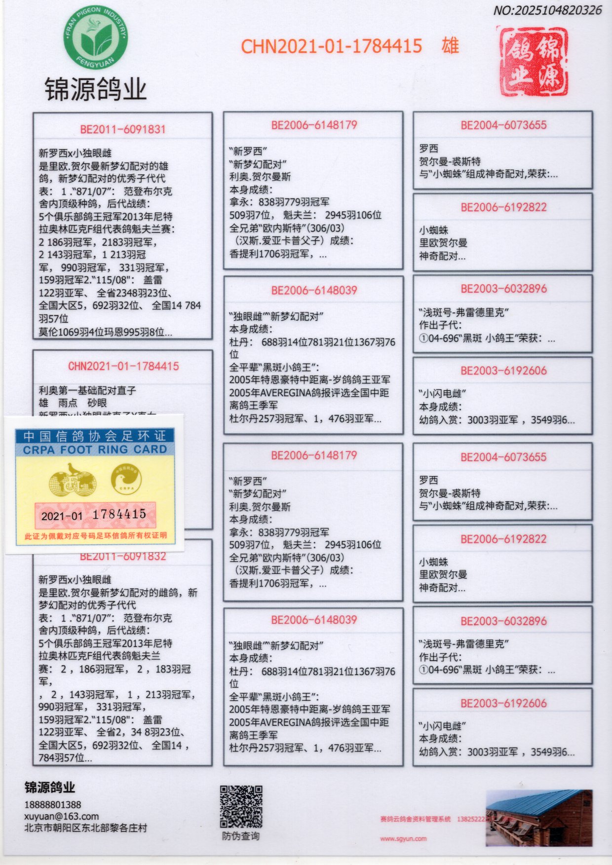 - 当前查看拍卖鸽:利奥第一基础配对直子21-1784415