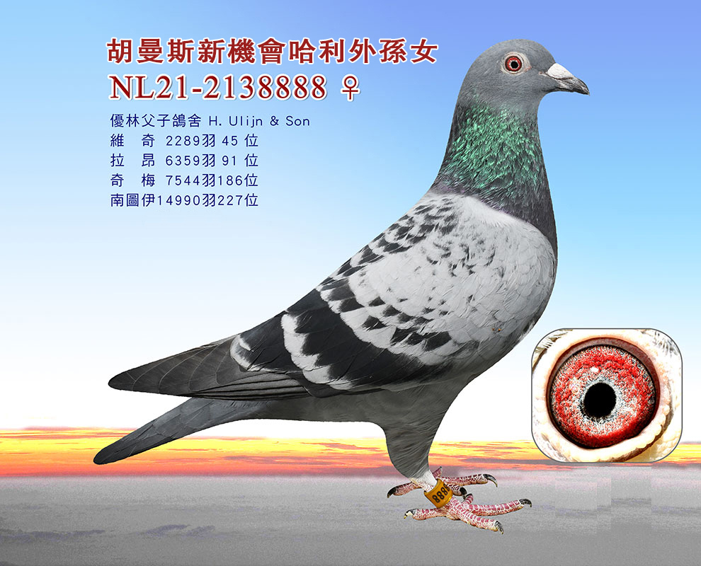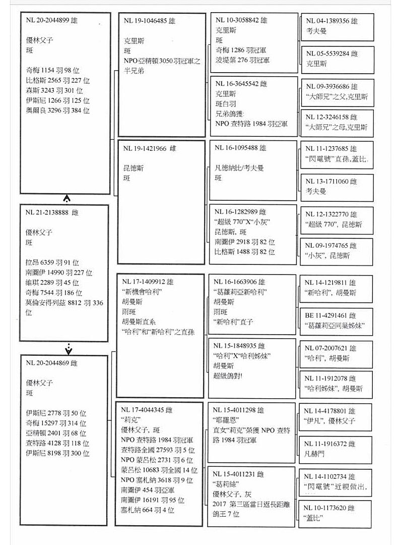 祖父:NL2019-106485克裏斯 考夫曼NPO亞精頓3050羽冠軍之半兄弟