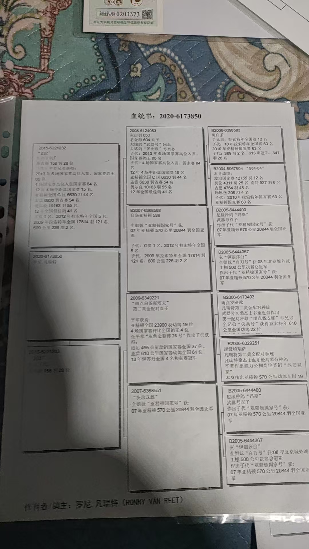 | 1601228 | 黑色闪电桑杰士,公棚决赛6名鸽王5位 | ¥600元 | 2次 |