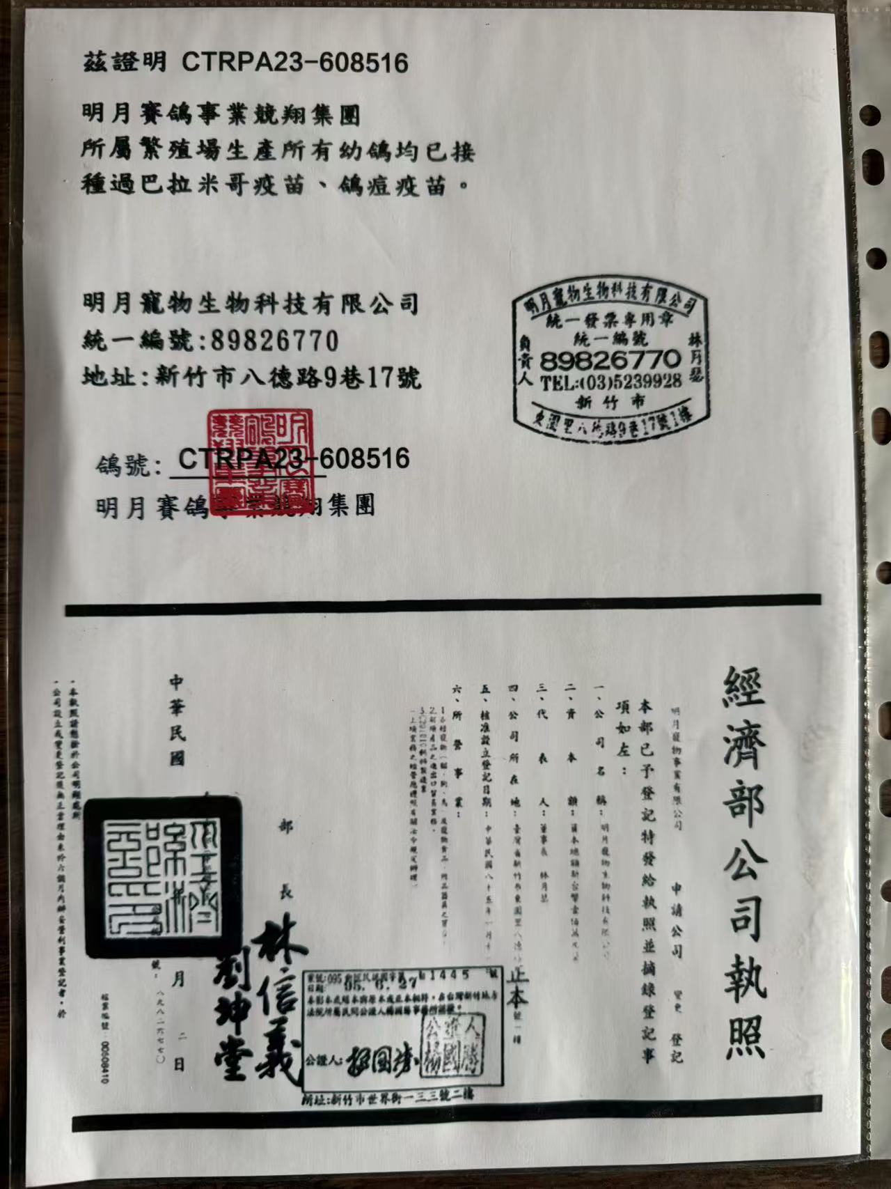 1601393 台湾大全鸽舍“恐怖59系” 本身300公里亚军 ¥400元 2次
