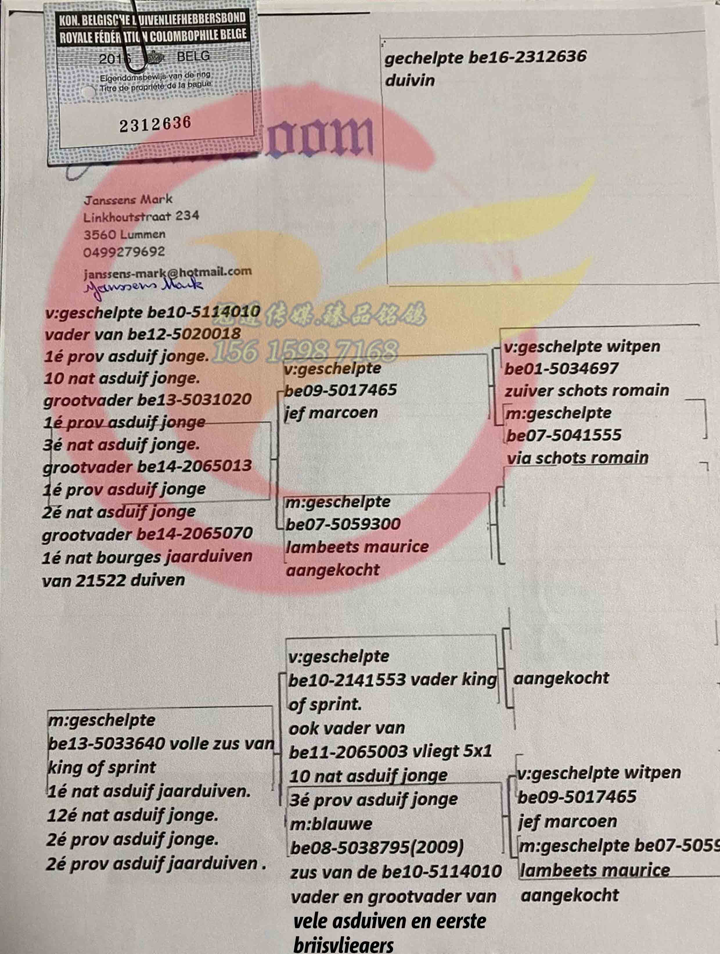 1601701 (鼎力推荐)范登布克“好红号直孙”ד好红号近亲 ¥1000元 0次