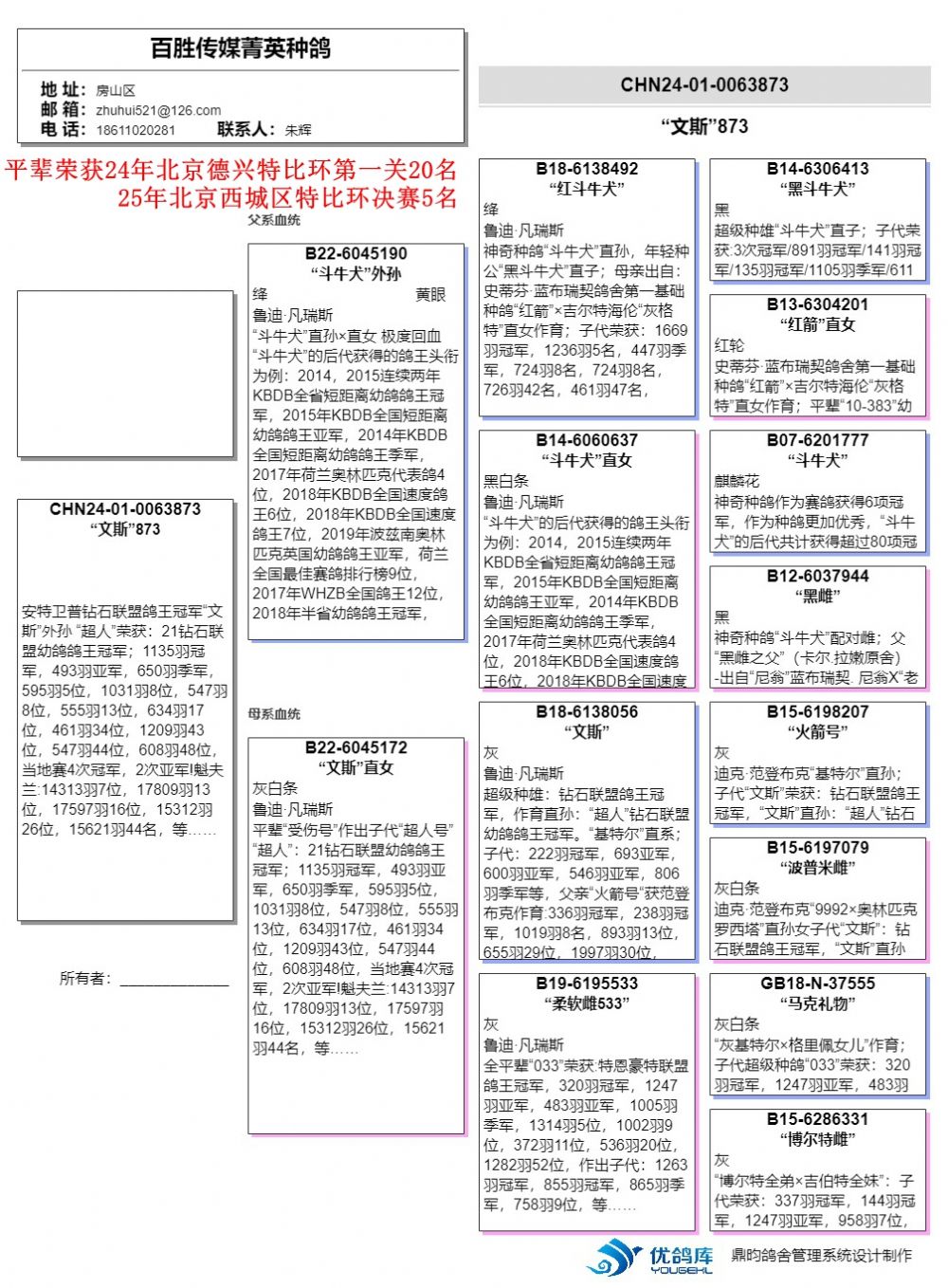 2024年北京百鸽园联盟杯四关鸽王47名;174名(同窝)