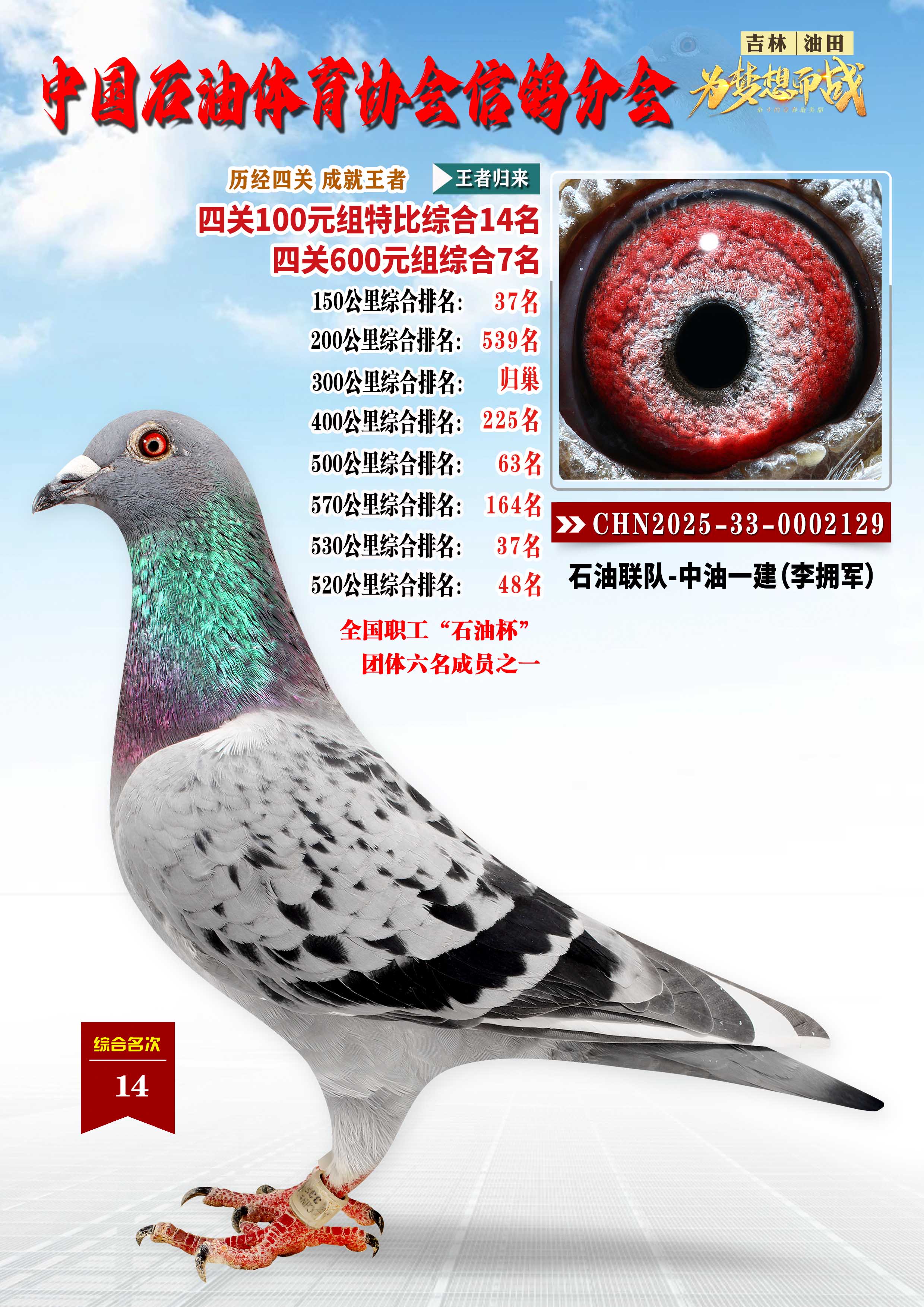 中国石油体育协会信鸽分会2025年“建业杯”全国职工鸽王争霸赛四关500公里综合7、吉林油田信鸽协会2025年“丰收杯”特比环四关大奖赛综合14名