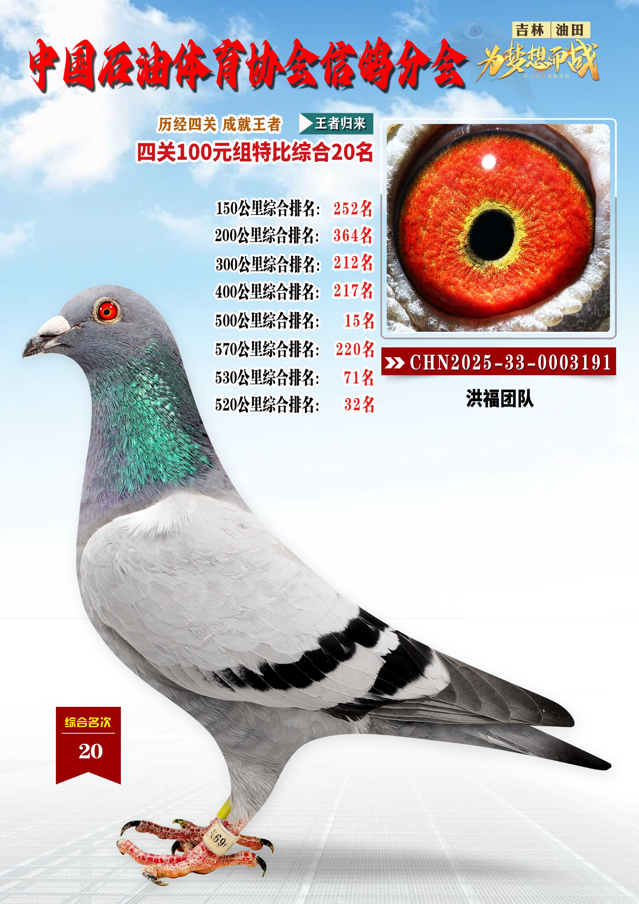 吉林油田信鸽协会2025年“丰收杯”特比环四关大奖赛综合20名