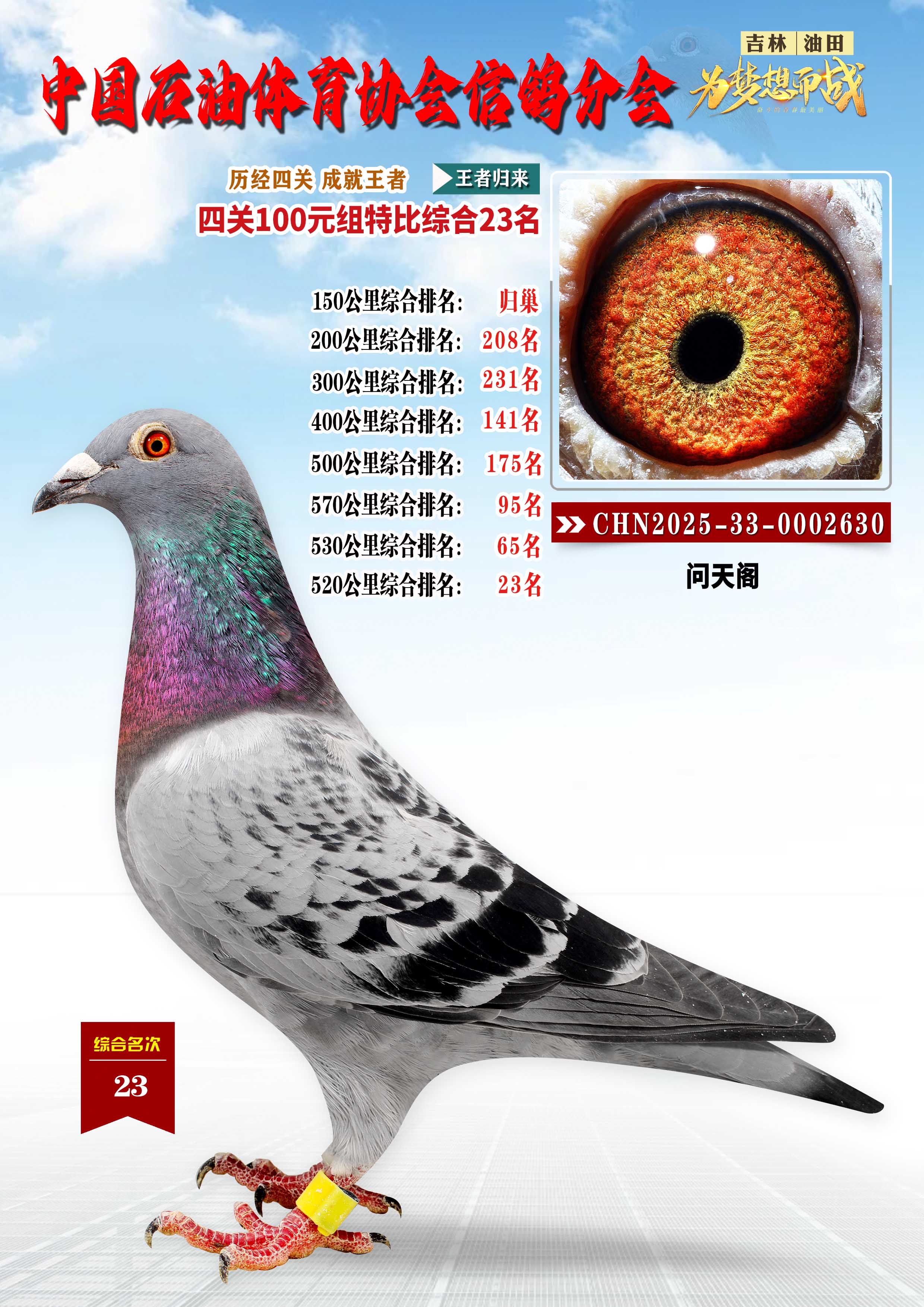 吉林油田信鸽协会2025年“丰收杯”特比环四关大奖赛综合23名