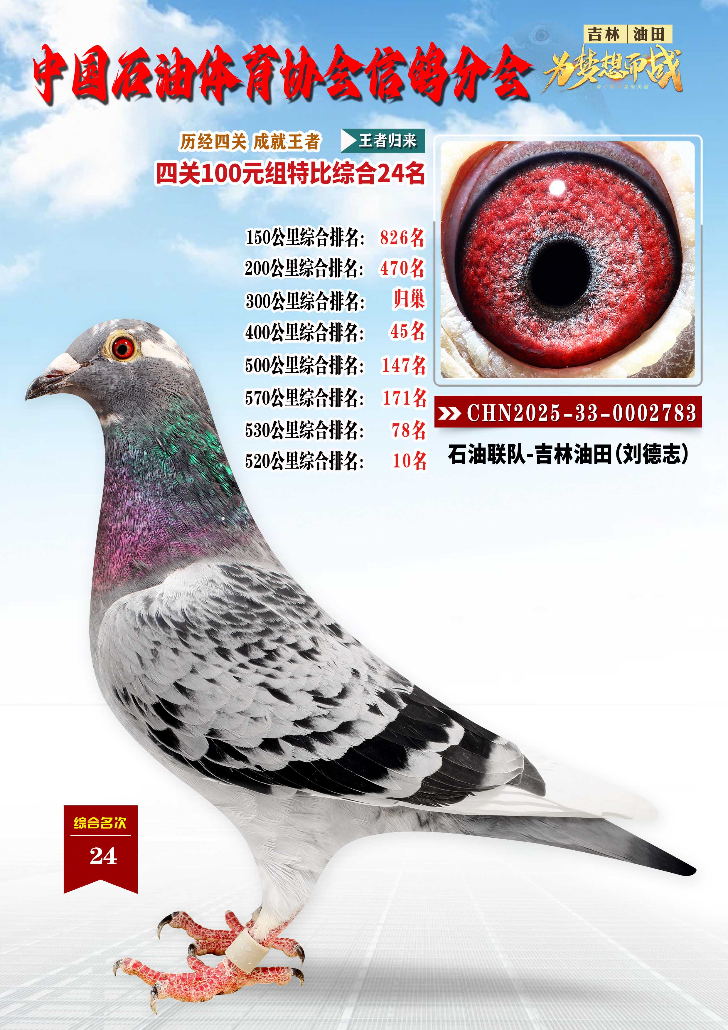 吉林油田信鸽协会2025年“丰收杯”特比环四关大奖赛综合24名