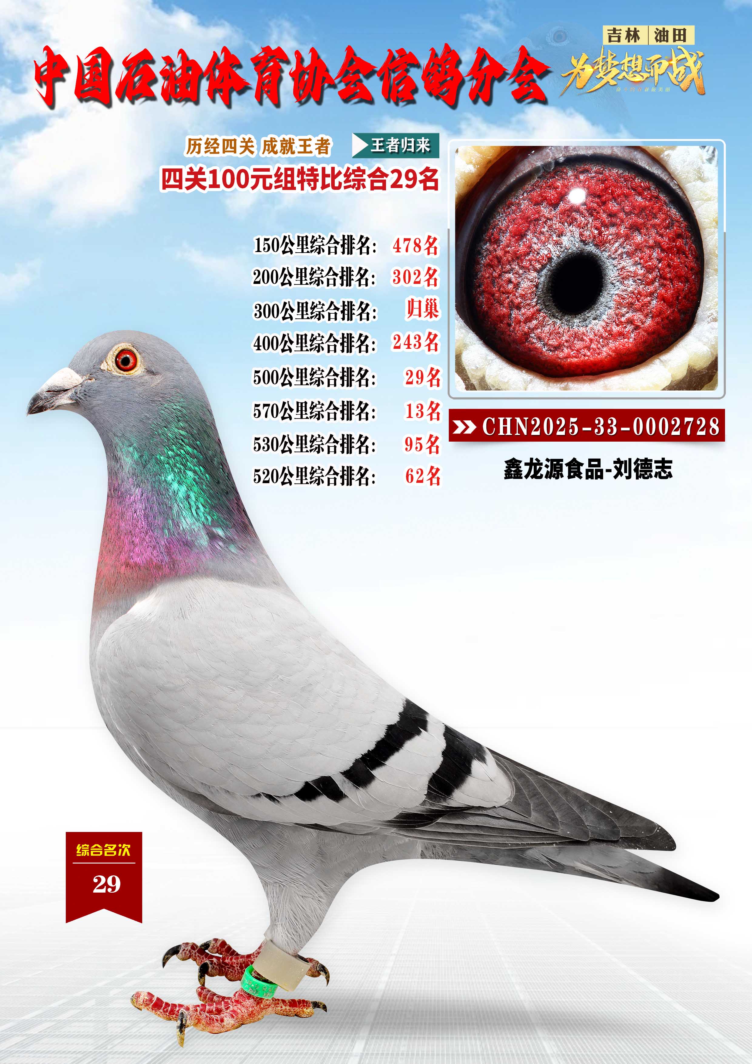 吉林油田信鸽协会2025年“丰收杯”特比环四关大奖赛综合29名
