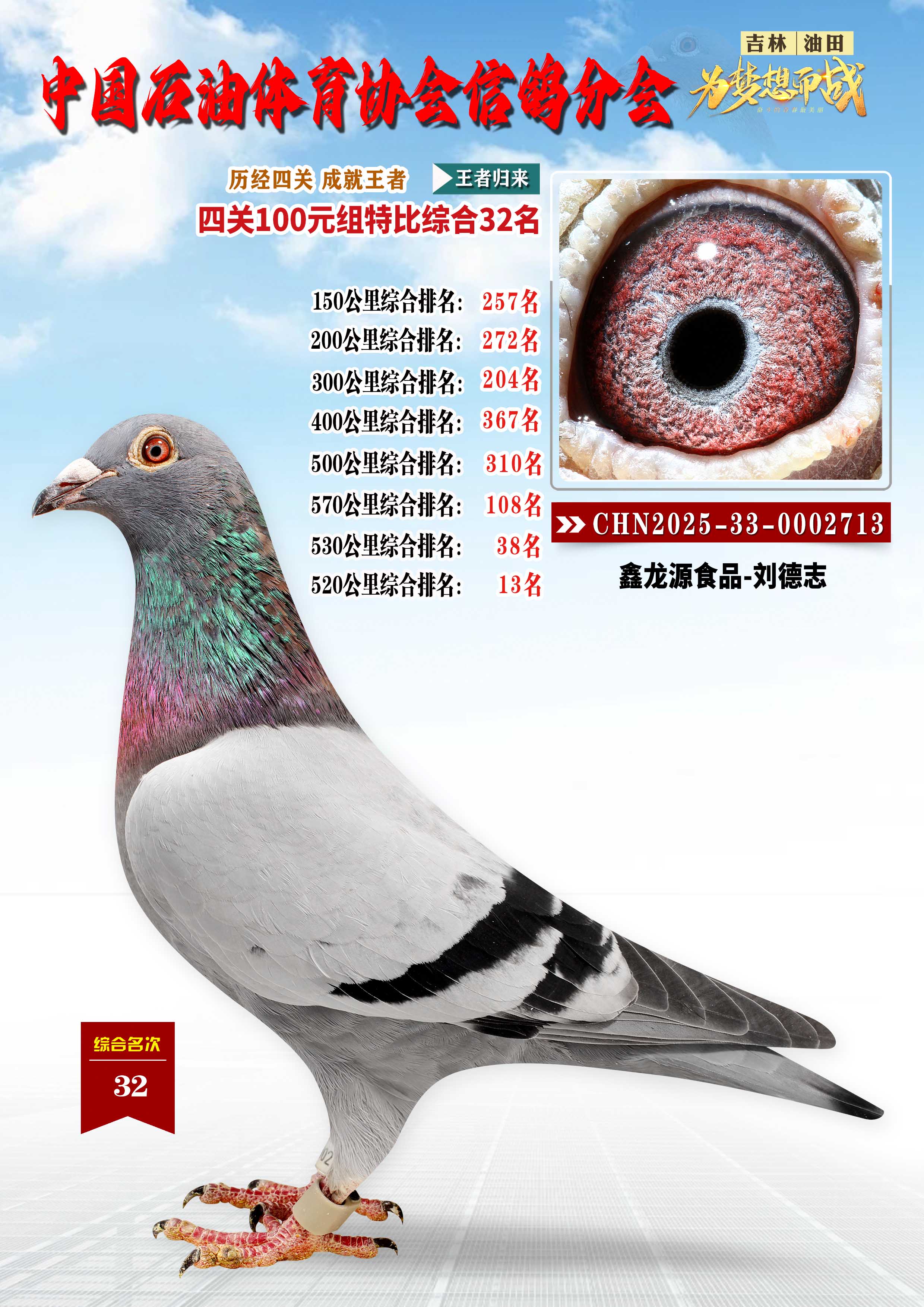 吉林油田信鸽协会2025年“丰收杯”特比环四关大奖赛综合32名