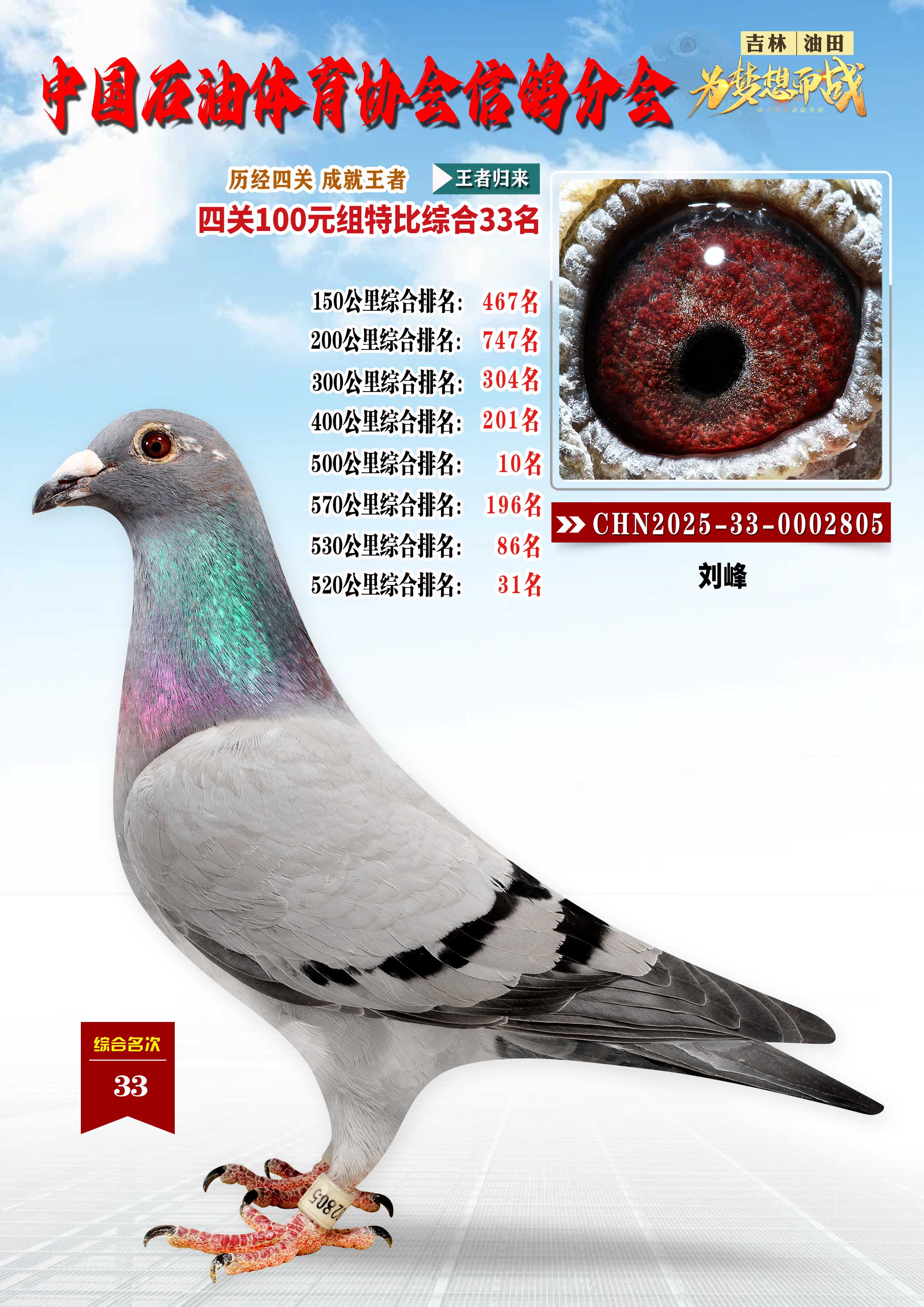 吉林油田信鸽协会2025年“丰收杯”特比环四关大奖赛综合33名