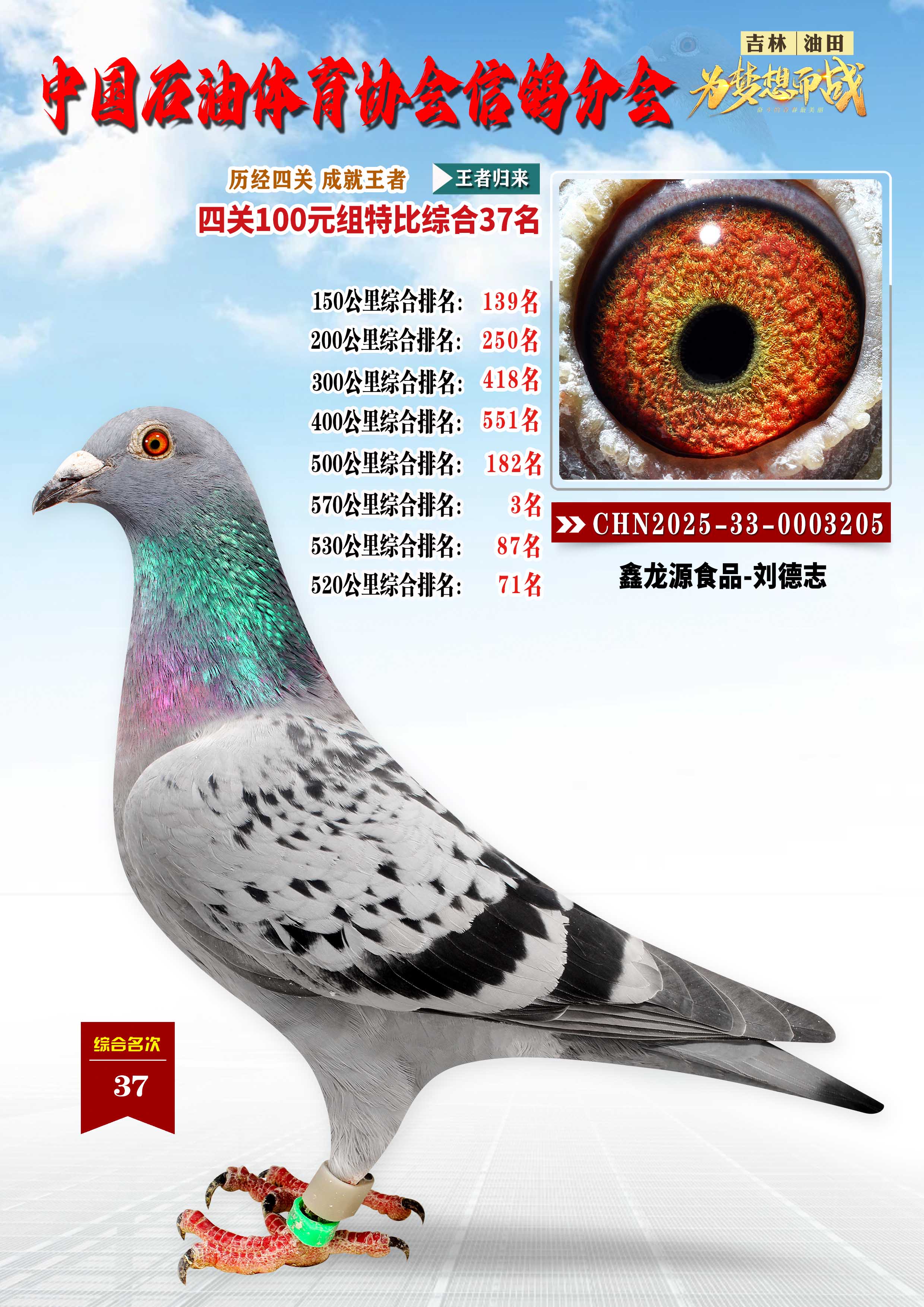 吉林油田信鸽协会2025年“丰收杯”特比环四关大奖赛综合37名