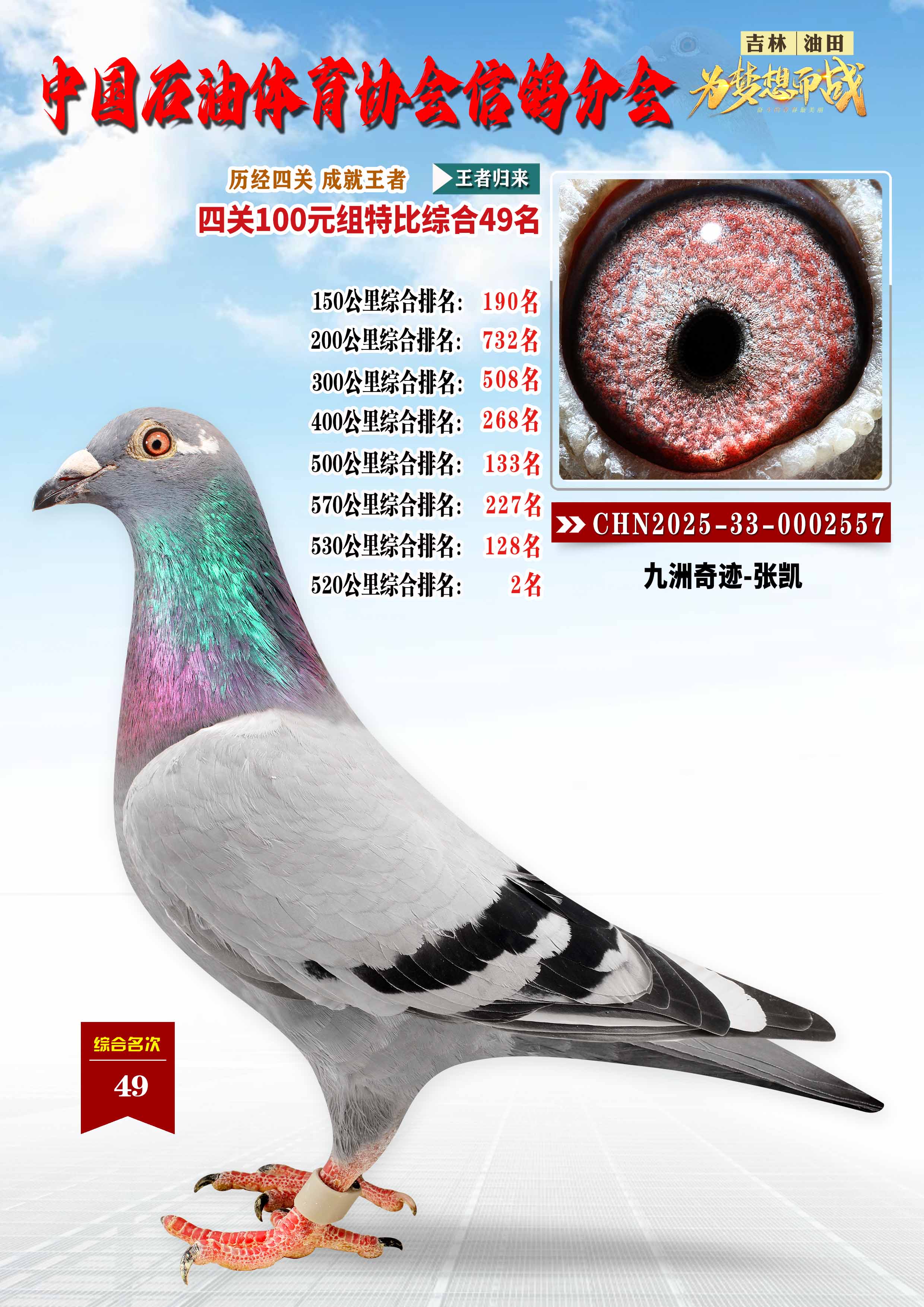 吉林油田信鸽协会2025年“丰收杯”特比环四关大奖赛综合49名