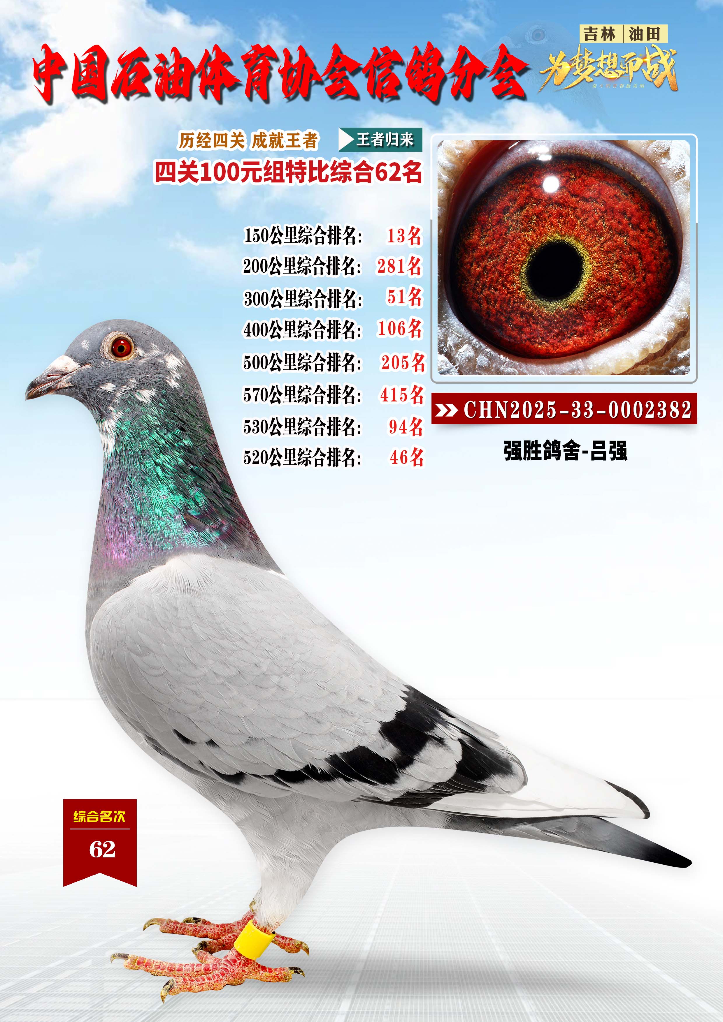 吉林油田信鸽协会2025年“丰收杯”特比环四关大奖赛综合62名