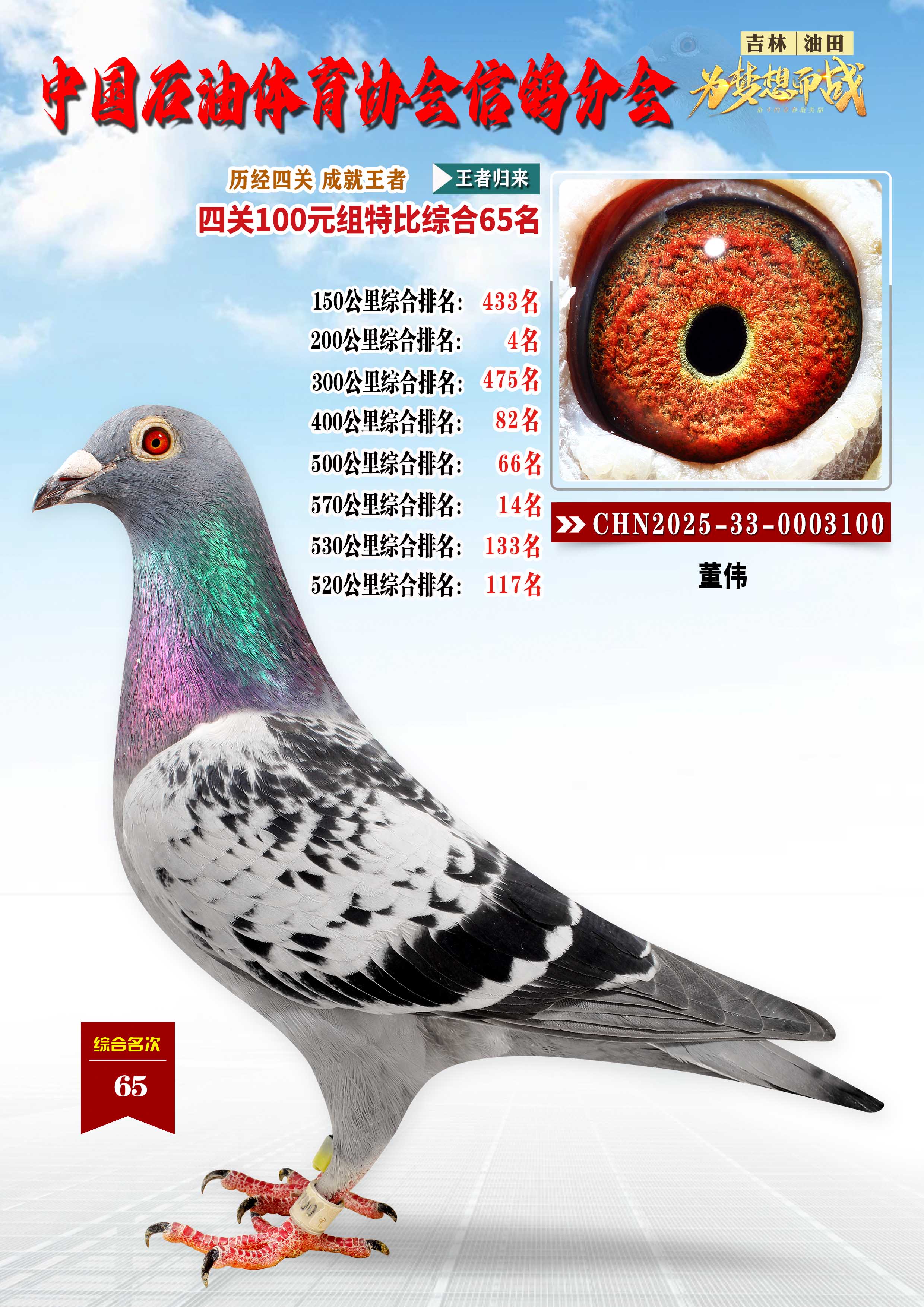 吉林油田信鸽协会2025年“丰收杯”特比环四关大奖赛综合65名