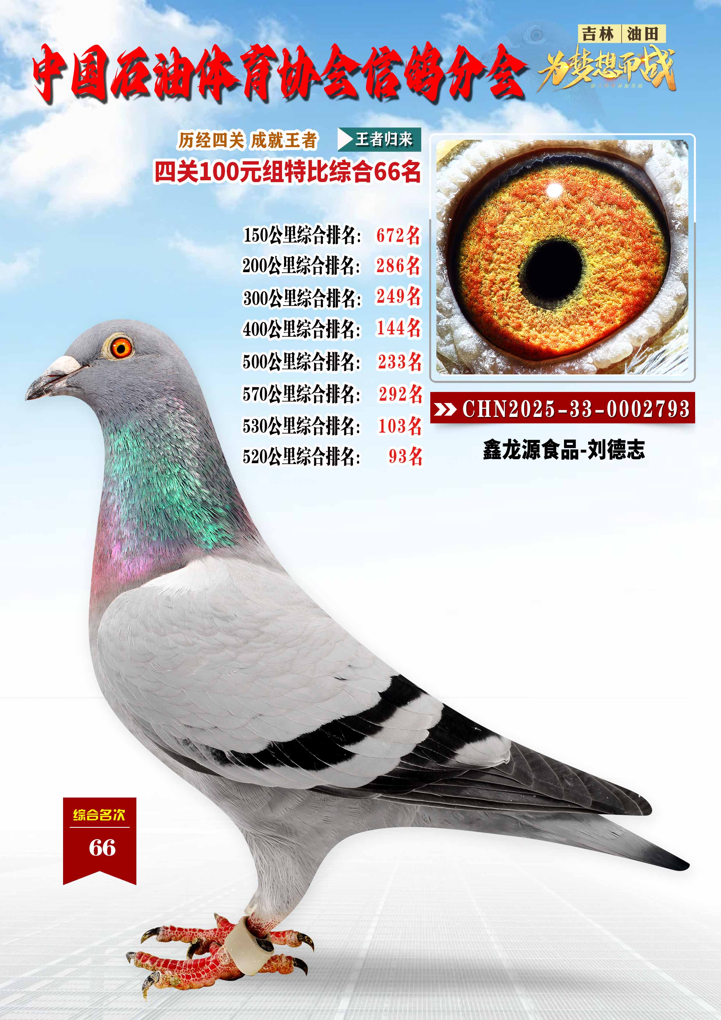 吉林油田信鸽协会2025年“丰收杯”特比环四关大奖赛综合66名