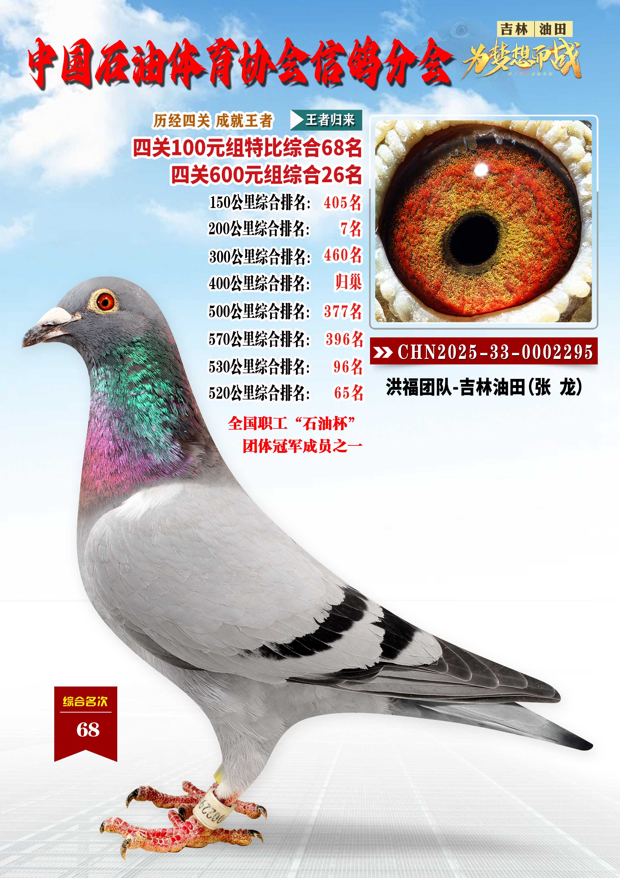 中国石油体育协会信鸽分会2025年“建业杯”全国职工鸽王争霸赛四关500公里综合26名、吉林油田信鸽协会2025年“丰收杯”特比环四关大奖赛综合68名