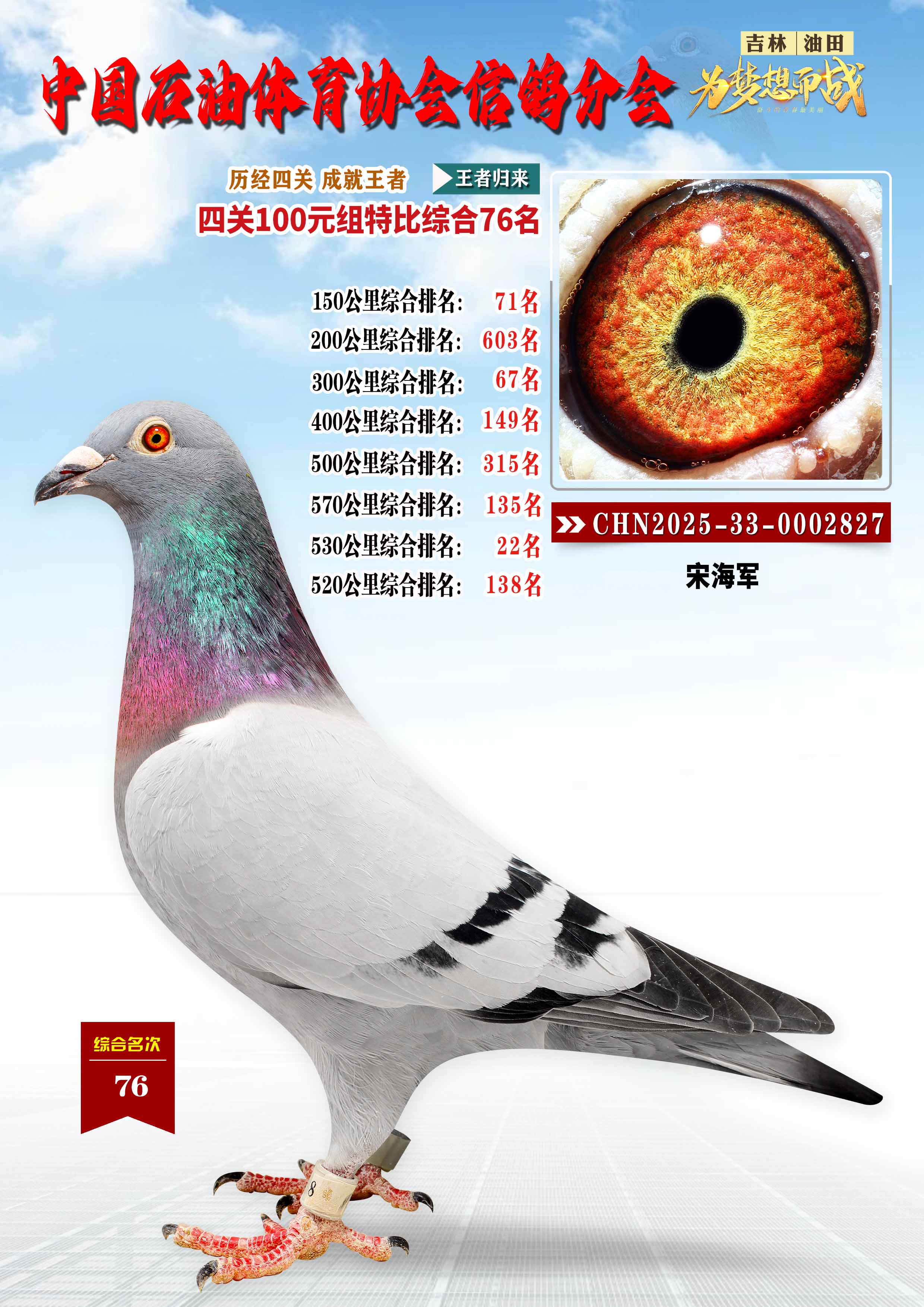 吉林油田信鸽协会2025年“丰收杯”特比环四关大奖赛综合76名