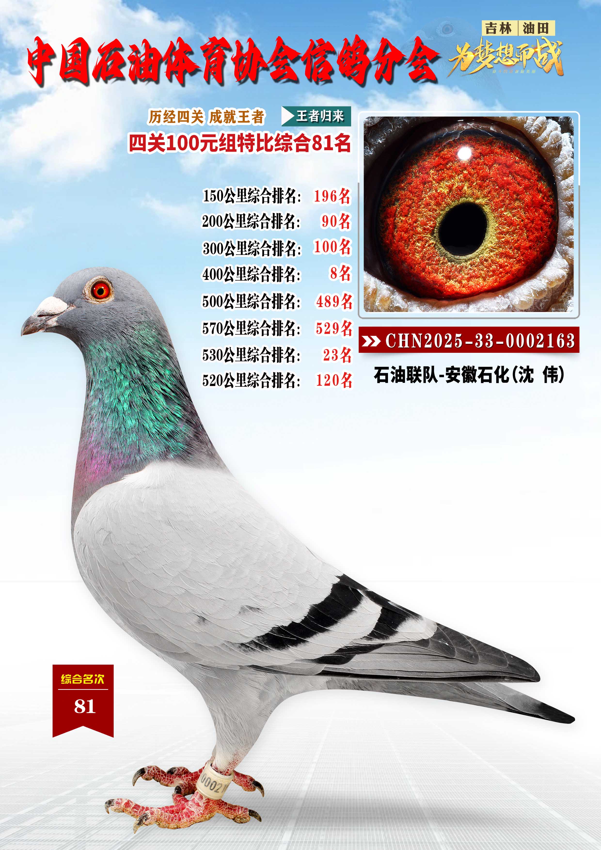吉林油田信鸽协会2025年“丰收杯”特比环四关大奖赛综合81名