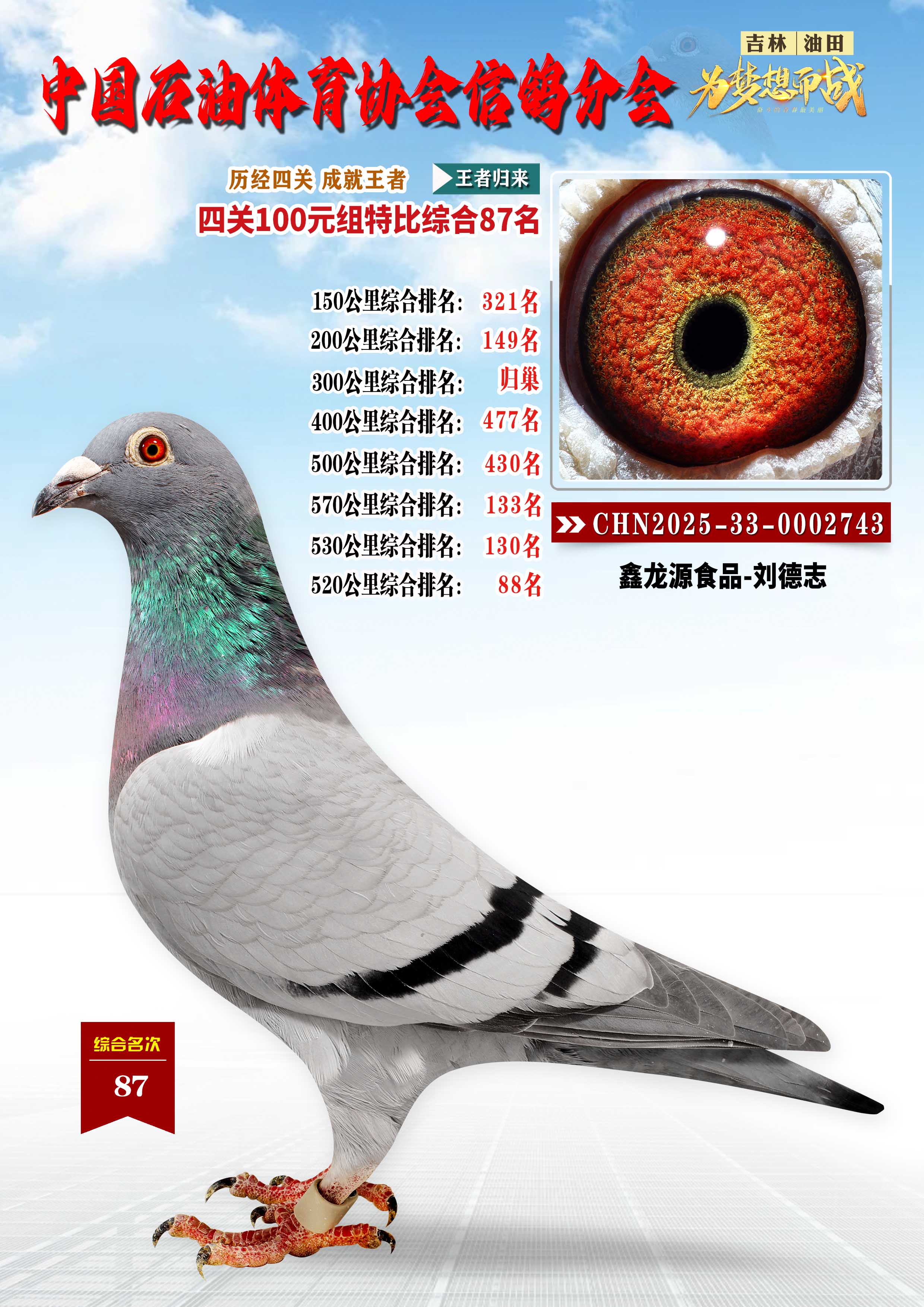 吉林油田信鸽协会2025年“丰收杯”特比环四关大奖赛综合87名