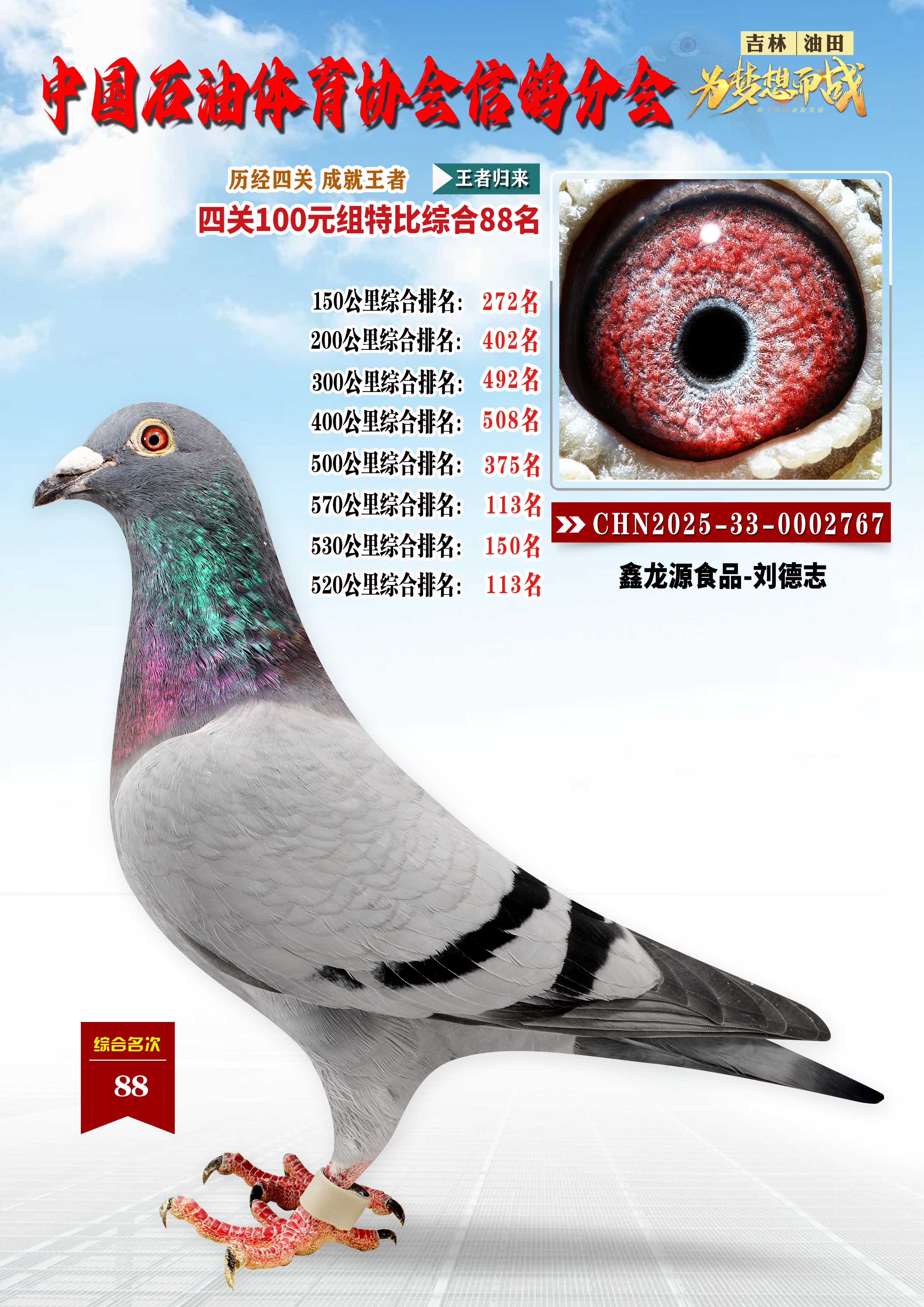 吉林油田信鸽协会2025年“丰收杯”特比环四关大奖赛综合88名