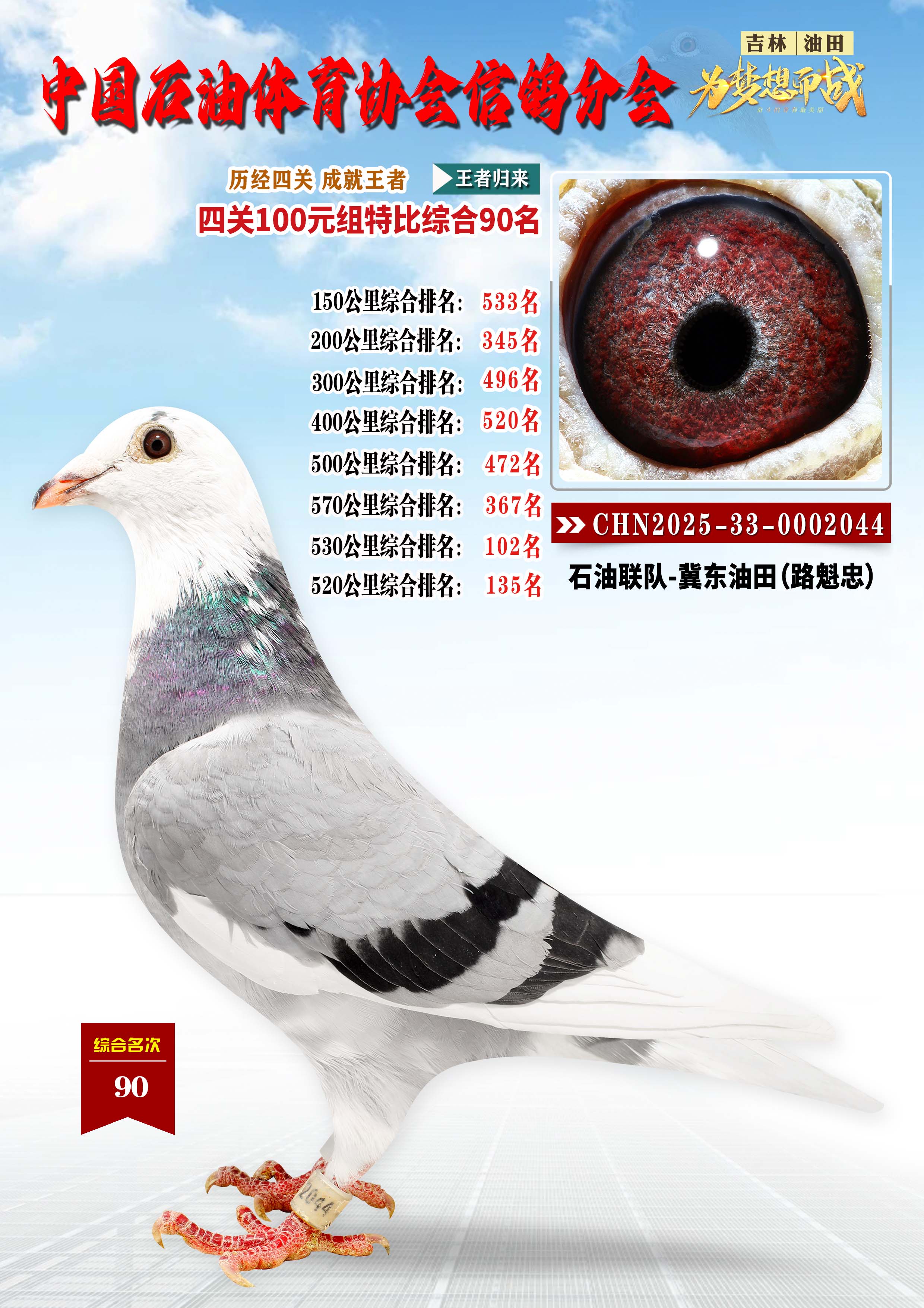 吉林油田信鸽协会2025年“丰收杯”特比环四关大奖赛综合90名