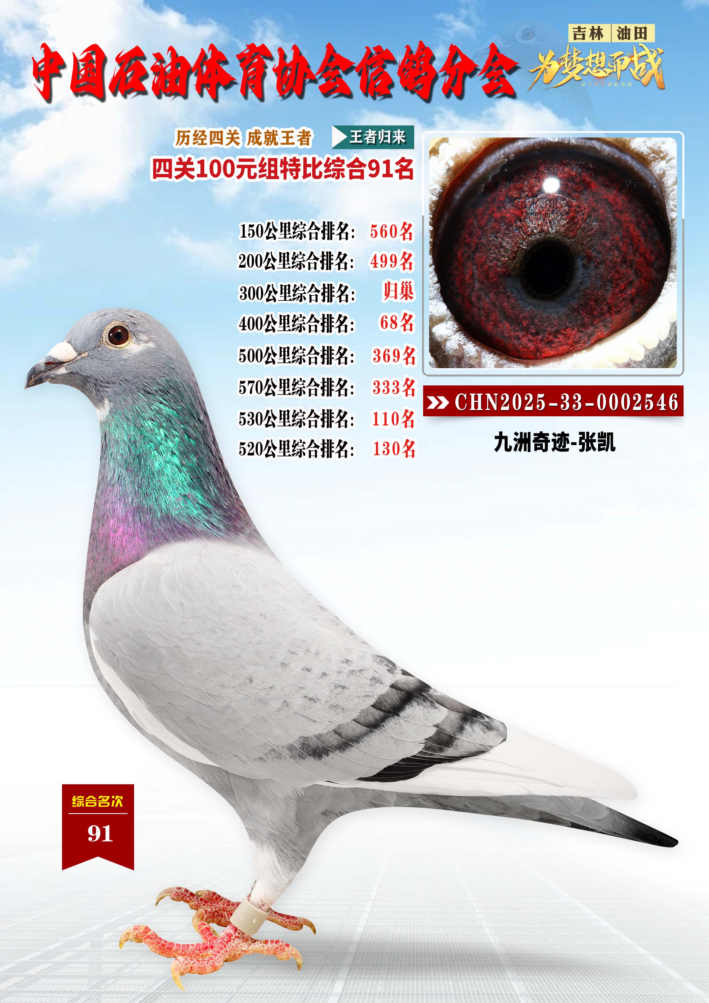 吉林油田信鸽协会2025年“丰收杯”特比环四关大奖赛综合91名
