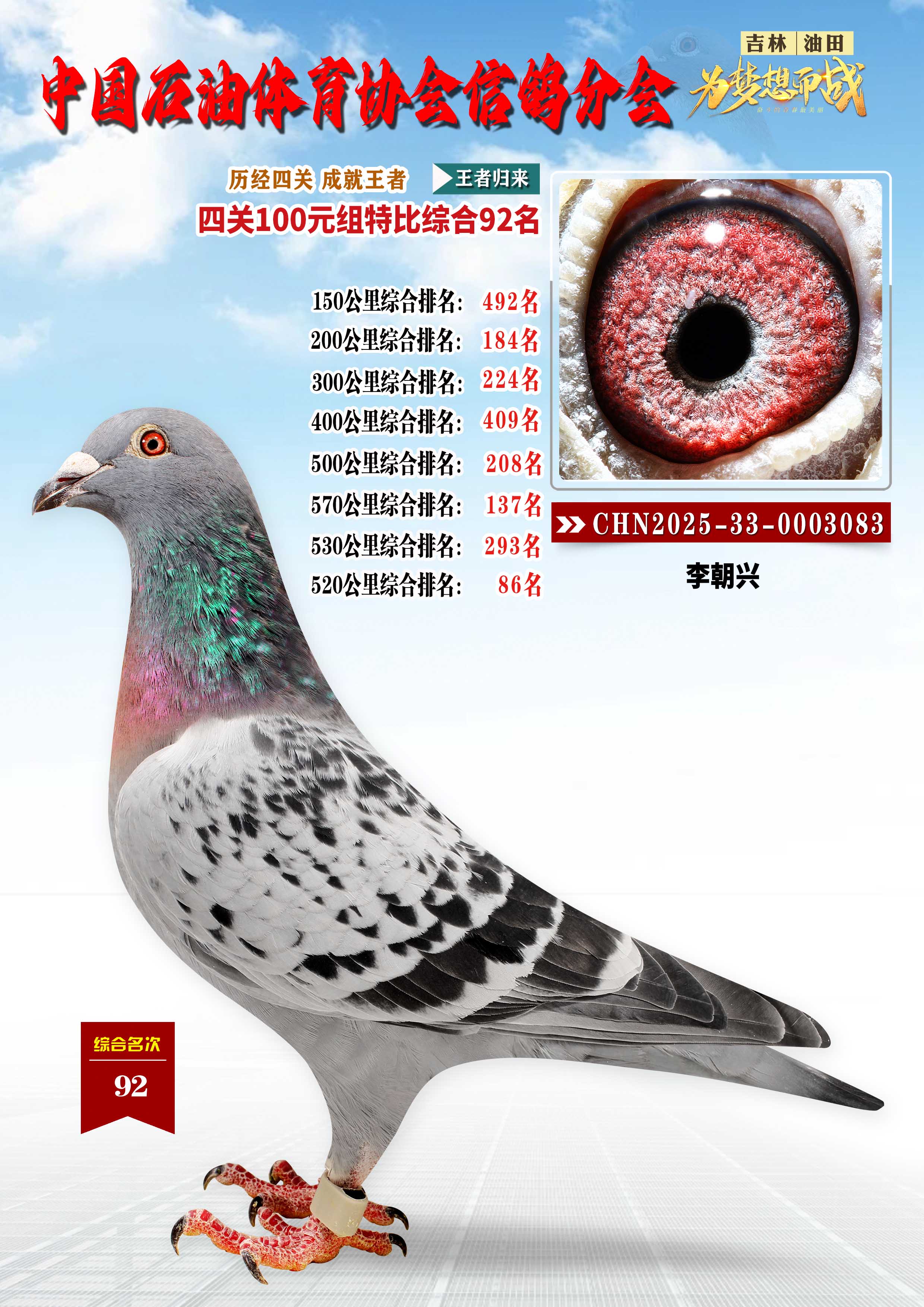 吉林油田信鸽协会2025年“丰收杯”特比环四关大奖赛综合92名
