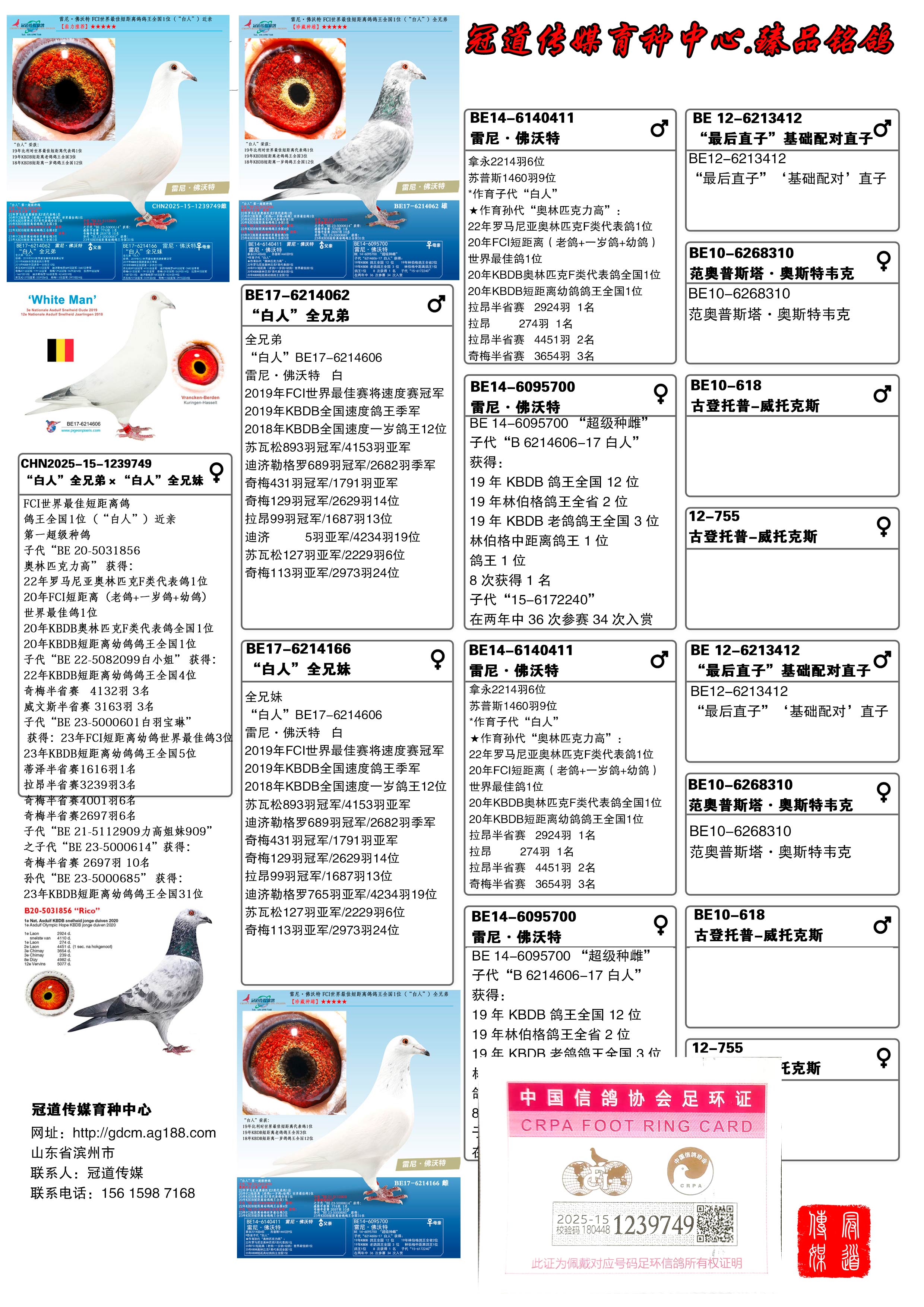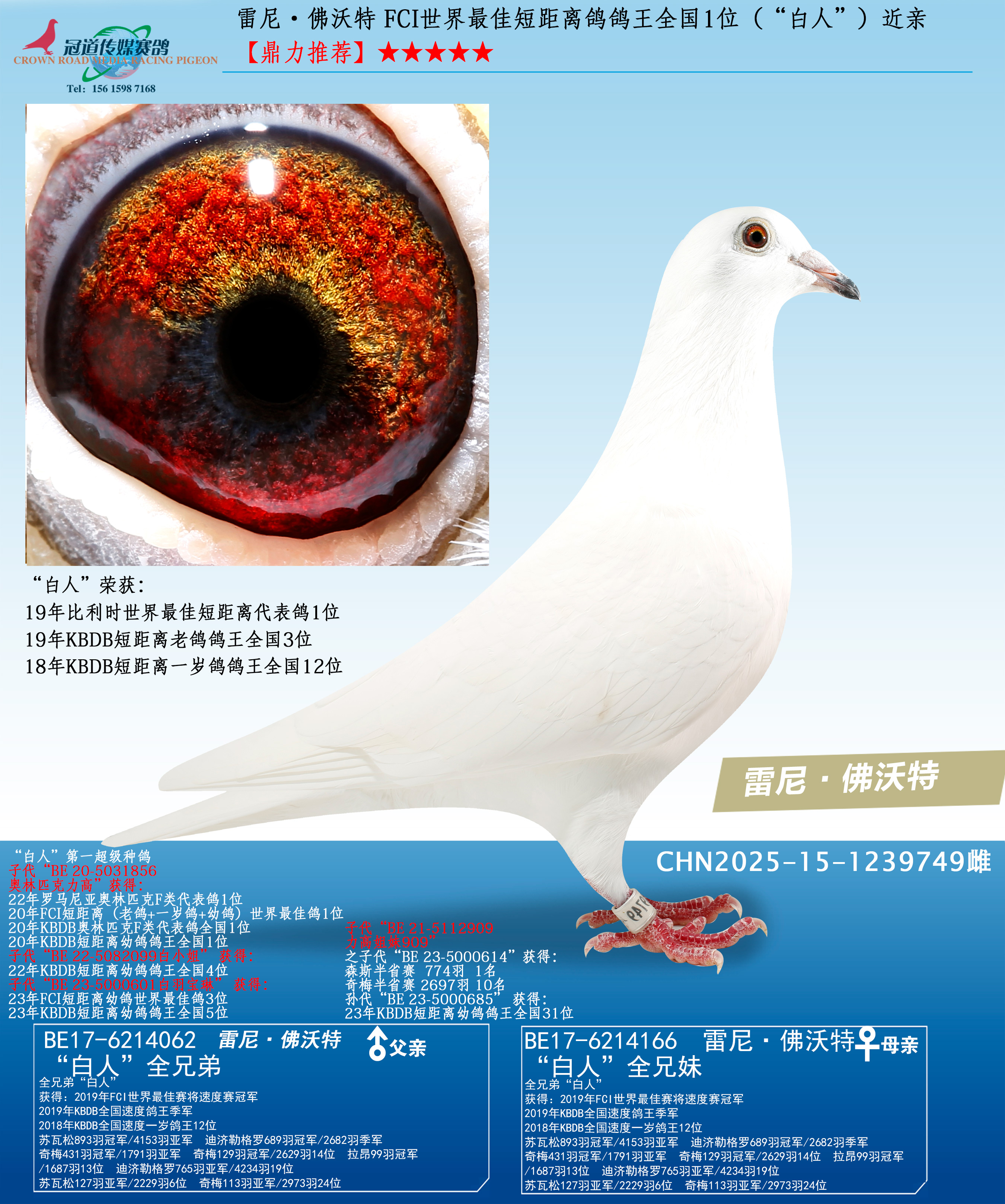 FCI世界最佳短距离鸽鸽王全国1位(“白人”)近亲