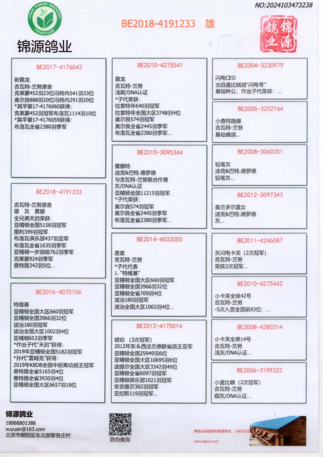 - 当前查看拍卖鸽:吉瓦特-兰努原舍-“新霸龙”X“特维基”